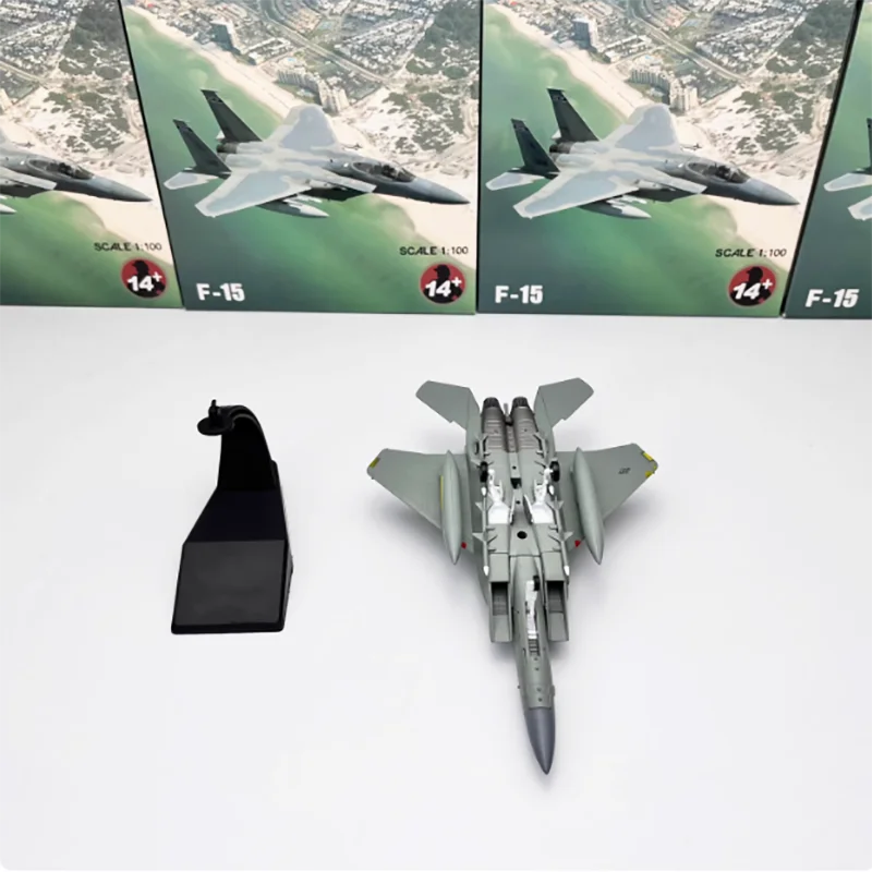 - Made of durable alloy with a sleek silver or gray color finish, representing the modern military aesthetic of the F-15 Strike Eagle fighter jet.