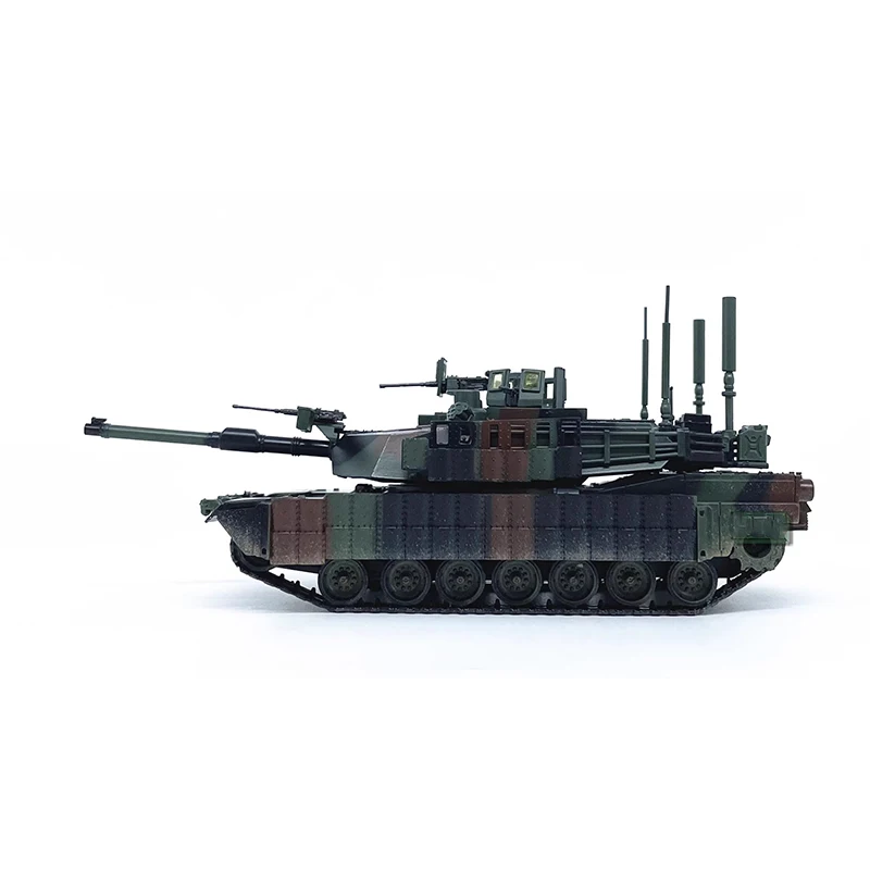 Enhance your collection with this highly detailed 1:72 scale US M1A2 TUSK II main battle tank model, crafted from PVC plastic. Featuring a realistic camouflage pattern in green, brown, and black, it showcases a central turret equipped with antennas, hatches, and periscopes, alongside intricately textured tracks that wrap around textured wheels and sprockets. Designed for static display, it measures approximately [size not specified], is fragile, and requires self-gluing for any detached parts. Perfect for enthusiasts and collectors aged 14 and above, this model offers an authentic military aesthetic ideal for decoration and display, capturing the rugged realism of a battle-hardened armored vehicle.