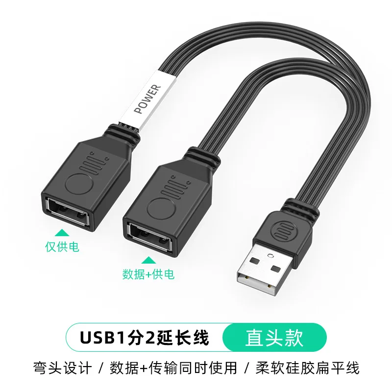 Experience seamless connectivity with this high-quality USB 1 to 2 extension splitter, designed to meet the demands of modern digital devices. Crafted from durable tinned copper wire and featuring a sleek, flat silicone-coated exterior, this splitter offers incredible flexibility and longevity. Its compact design makes routing easy while maintaining robustness. The black ports with circular textured grips and labeled “POWER” ensure secure connections. Supporting 65W fast charging, it is perfect for powering and extending multiple USB devices simultaneously, whether for PC use or other compatible equipment. Available in three lengths—10cm, 30cm, and 50cm—it provides versatile options for your setup. Elevate your device connectivity with reliable performance and stylish design.