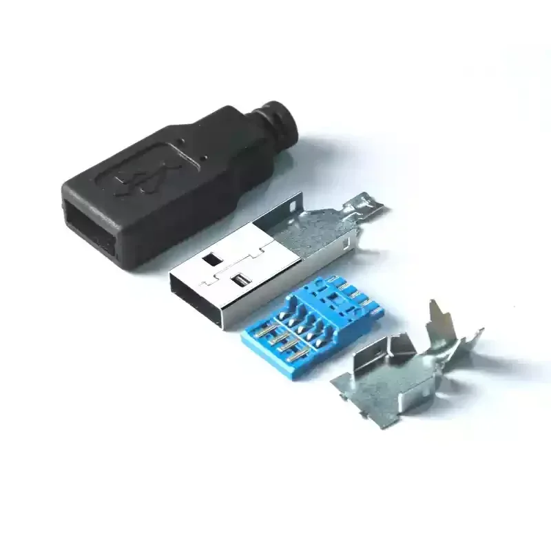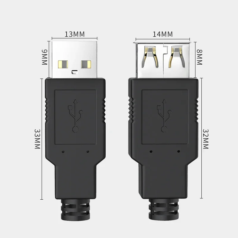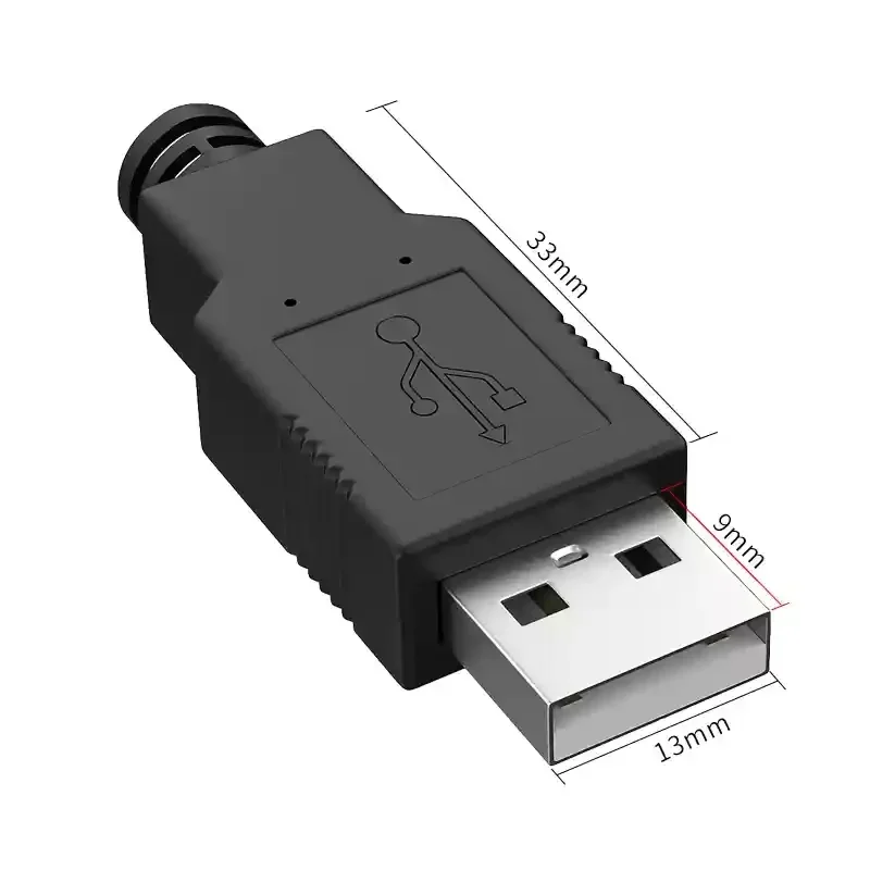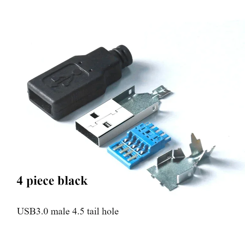 This USB solderless plug connector supports USB 2.0 and USB 3.0 standards with configurations for 4-pin and 8-pin connections. Made from pure copper plated with gold for superior conductivity and oxidation resistance, it features a durable black PVC shell for added protection. The assembly is detachable and easy to connect, with a pin hole diameter of 4.55mm suitable for threading USB wires up to 4.5mm in diameter. Its 4-piece male head design ensures a secure, reliable connection resistant to pulling and insertion stress, making it ideal for stable data transmission and long-term use in professional applications.