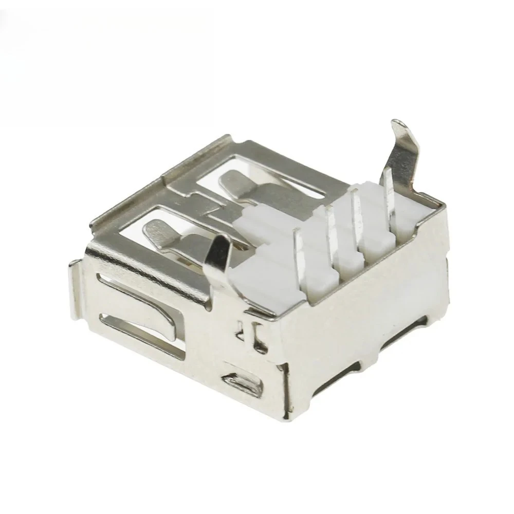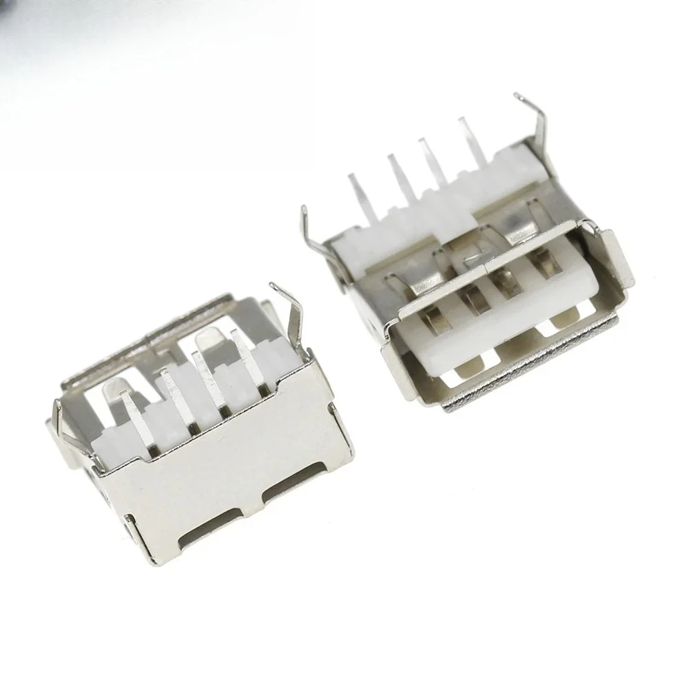 Experience reliable connectivity with this set of ten USB 2.0 Type A female socket connectors from ZHUJI. Designed with a sleek metallic finish, these connectors feature a polished, silvery exterior that exudes durability and modern appeal. Their precise construction includes white plastic insulators inside, creating a clear contrast against the shiny metal shells and emphasizing the four evenly spaced contact pins. The 90-degree angled design provides ease of connection in tight spaces, making them ideal for data transmission and charging applications. With a length of about 2 feet, these connectors are perfect for customized electronic projects, repairs, or professional installations. Trust these connectors for their high-quality build and seamless functionality.