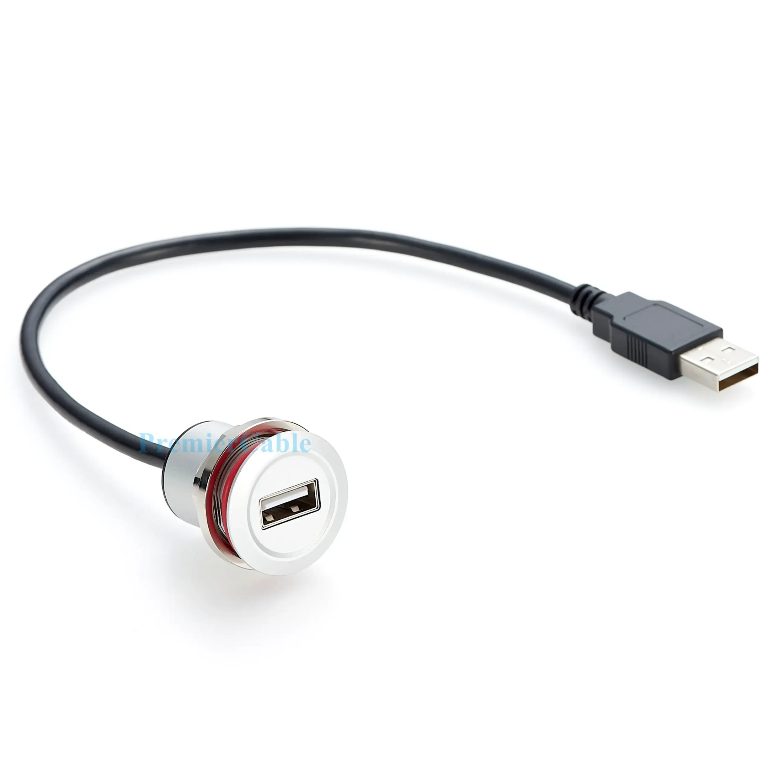 Experience seamless connectivity with this sophisticated and durable USB 2.0 extension cable designed for easy flush installation. With a length of just 0.3 meters, it offers flexibility while maintaining a clean, professional look. The connector features a smooth, white finish with a subtle red ring, adding a touch of modern elegance. Crafted from aluminum alloy and a pure copper core, the cable is built for strength, excellent conductivity, and resistance to scratching, oxidation, and corrosion. Its round panel mount interface ensures a snug fit into standard 22.5mm or 23mm holes, making installation straightforward. Whether for automotive dashboards, custom panels, or efficient workspace setups, this cable delivers both style and reliable performance.