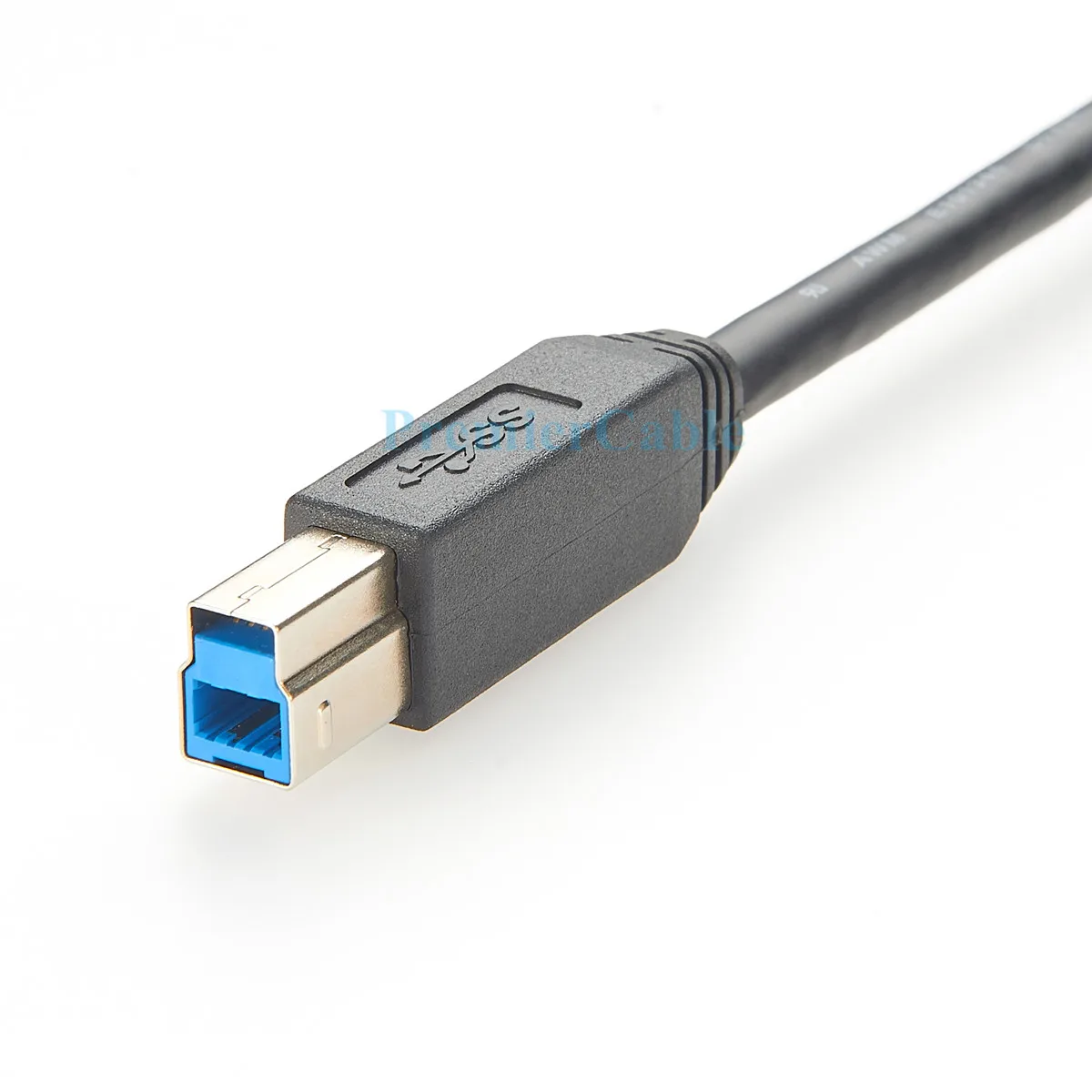 - The dual USB Type B 3.0 connectors include a male and female interface, with the female embedded in a smooth round housing and the blue insert inside the rectangular connector, emphasizing modern high-speed standards.
