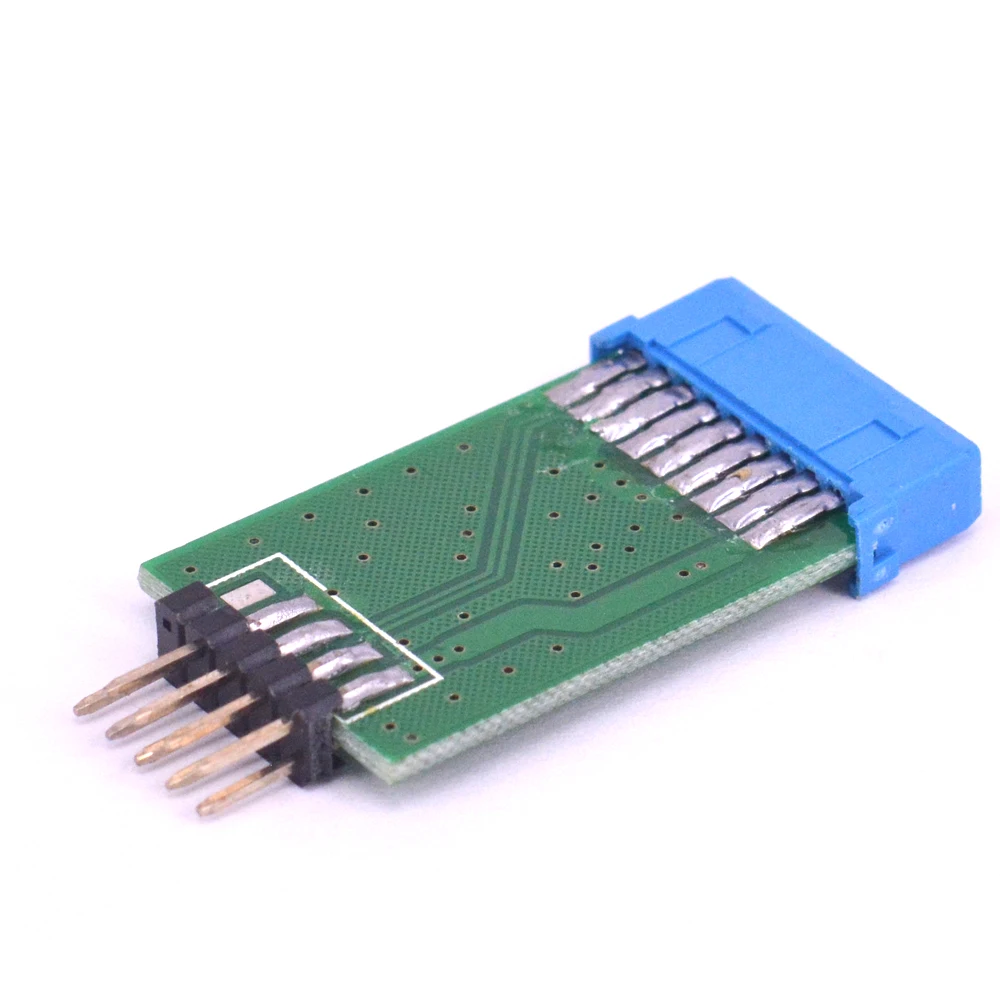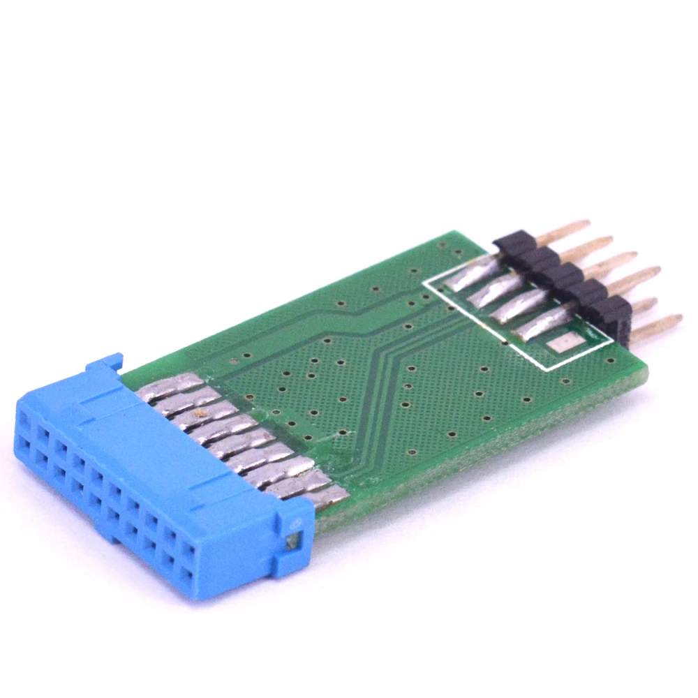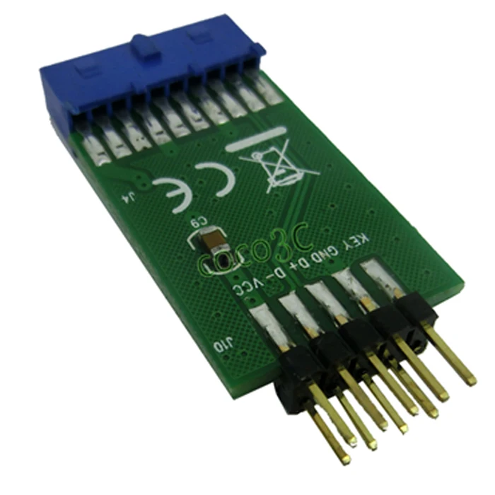 - The small circuit board with gold-plated pins and a blue plastic connector ensures stable internal connections with compatibility across multiple computer motherboards supporting USB headers.