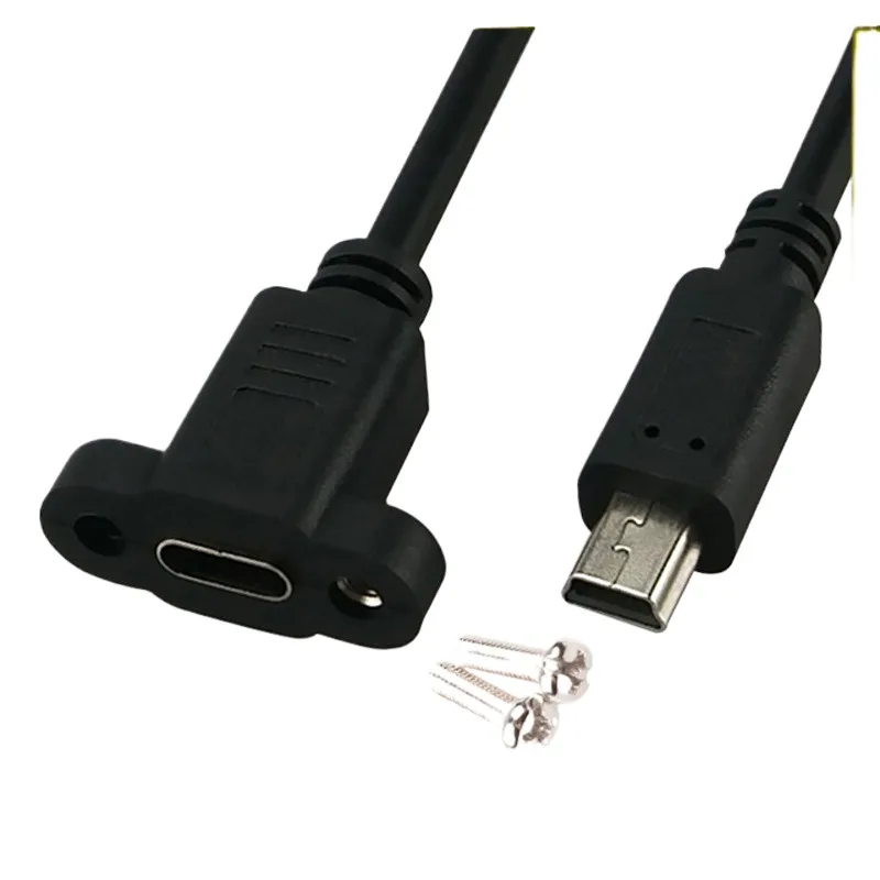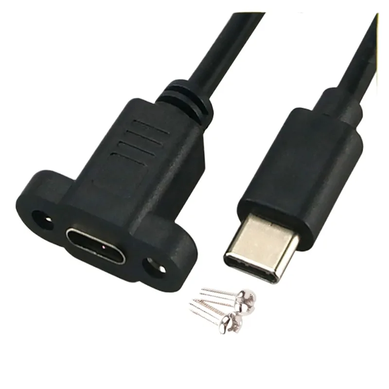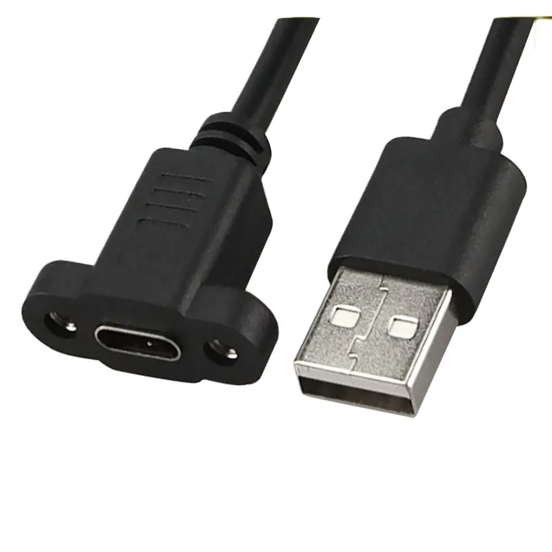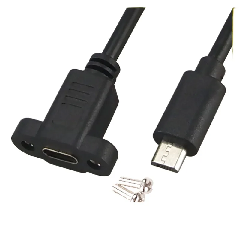Enhance your connectivity with this durable USB extension cable featuring a sleek black finish, available in 30cm or 50cm lengths. It includes a USB 3.1 Type-C male connector with a slim, rectangular design, and a female port compatible with Micro USB 2.0 printers and similar devices. The cable supports data transfer and power delivery up to 5V at 3A, ensuring reliable performance. Equipped with panel mount screw holes at 17mm pitch, it allows secure installation for professional or technical setups. Built with sturdy plastic housings and precision connections, this extension cable is perfect for seamless, safe extension of your Type-C devices in any environment.