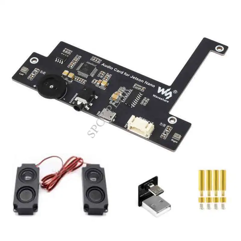 Enhance your Jetson Nano development experience with this sleek USB audio card featuring an SSS1629 audio chip, USB 2.0 plug-and-play support, and a compact, modern design. It includes dual stereo sound track recording with a built-in MEMS microphone, a standard 3.5mm audio jack for earphones, and a dual-channel speaker header for direct drive of an 8Ω 5W stereo speaker with volume adjustment. Technical features include embedded EEPROM, a PAM8403 power amplifier, and compatibility with multiple systems. Perfect for sound recording, playback, speech synthesis, dictation, wake-up, and dialog functions, it also supports Snowboy hotword detection and Google Assistant. Contains the audio card, speaker, USB adapter, screws, and user manual for seamless setup.