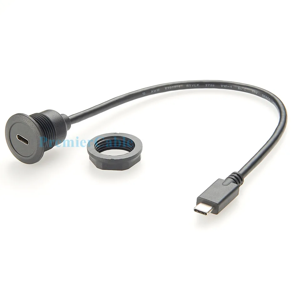 Imagine effortlessly connecting your devices with this sleek, black USB C converter extension cable. Its flexible 30 cm length allows easy positioning, enhancing your workspace or entertainment setup. Designed with a modern, minimalist aesthetic, the round panel mount connectors feature durable metallic surfaces and a matte black finish, blending seamlessly into professional environments. The cable’s robust plastic housing and textured mounting nut provide a clean, sophisticated look. Crafted to deliver high-speed data with 10 Gbps transfer rates, support 4K@60Hz video, and enable 100W fast charging, it’s ideal for laptops, tablets, and smartphones. Whether you're upgrading a workstation or establishing a reliable connection, this cable combines style, strength, and versatility in one seamless package.
