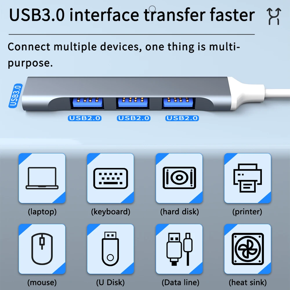 - This USB C Hub supports USB 3.1 with four ports: one USB 3.0 and three USB 2.0, perfect for connecting multiple high-speed devices simultaneously.