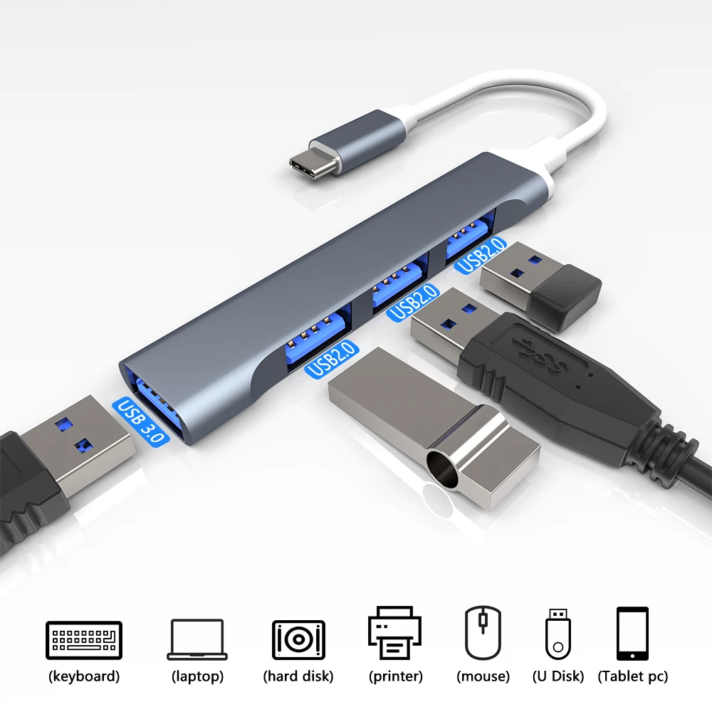 Enhance your digital workspace with this stylish USB C Hub designed for effortless connectivity. Its slim, cylindrical shape with a matte finish in black, grey, or silver complements modern tech setups. The ergonomic slant interface offers comfortable handling, perfect for both professional and casual environments. Featuring one USB 3.0 port and three USB 2.0 ports, it supports data transfer speeds up to 5Gbps, enabling rapid multimedia sharing and quick backups. Built-in overload voltage and current protection ensure the safety of all connected devices, giving you peace of mind. The plug-and-play design allows easy installation without drivers, making it ideal for MacBook Pro, Air M1, Huawei, and other PCs. Its sleek design and reliable performance seamlessly integrate into your daily tech needs.