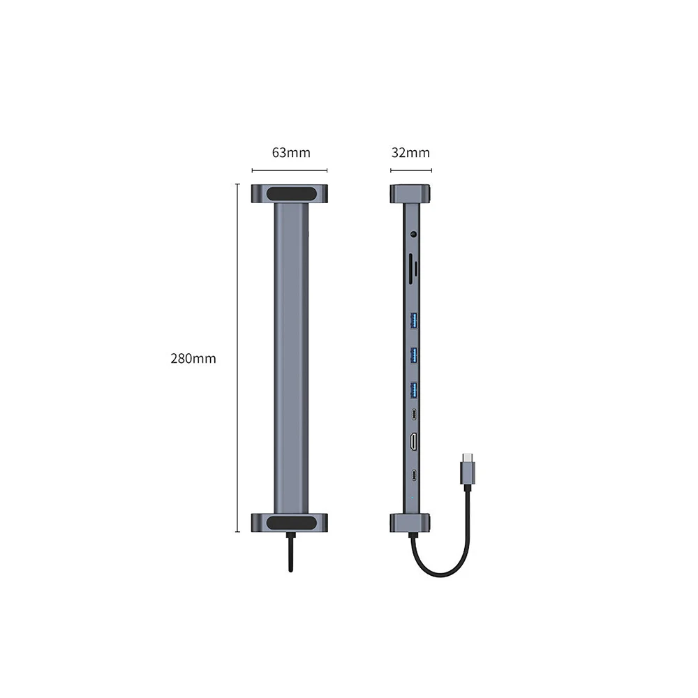 10 Ports Type C HUB with Stand for Laptop Foldable Holder Lan Extender USB Disk Micro SD TF Card Reader PD Charging 4K 30HZ Cable Splitter