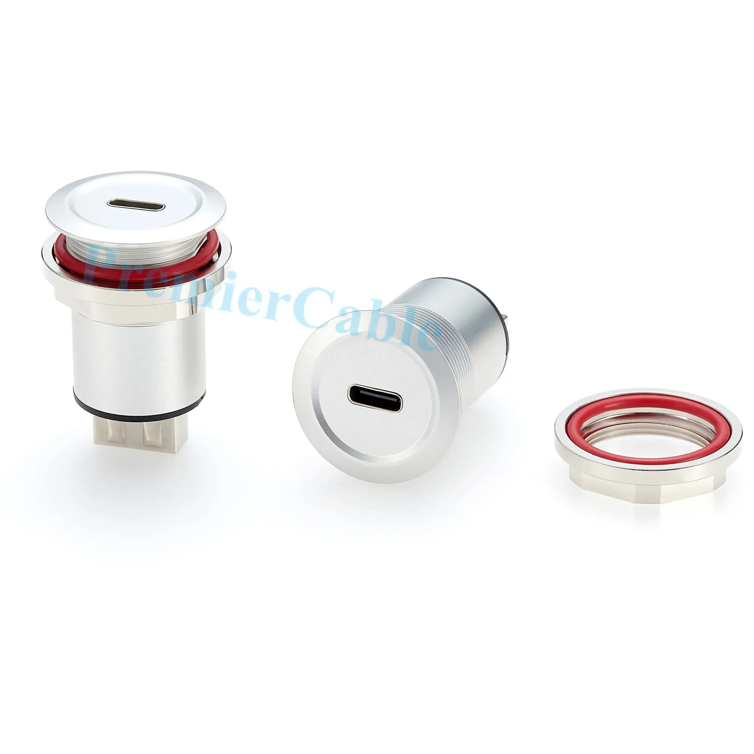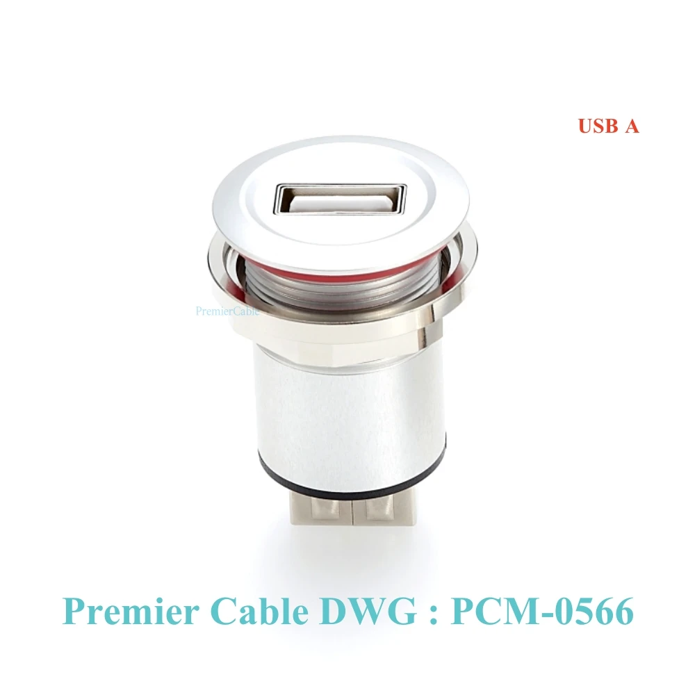 USB C to A Round Panel Mount Adapter 23mm Chrome