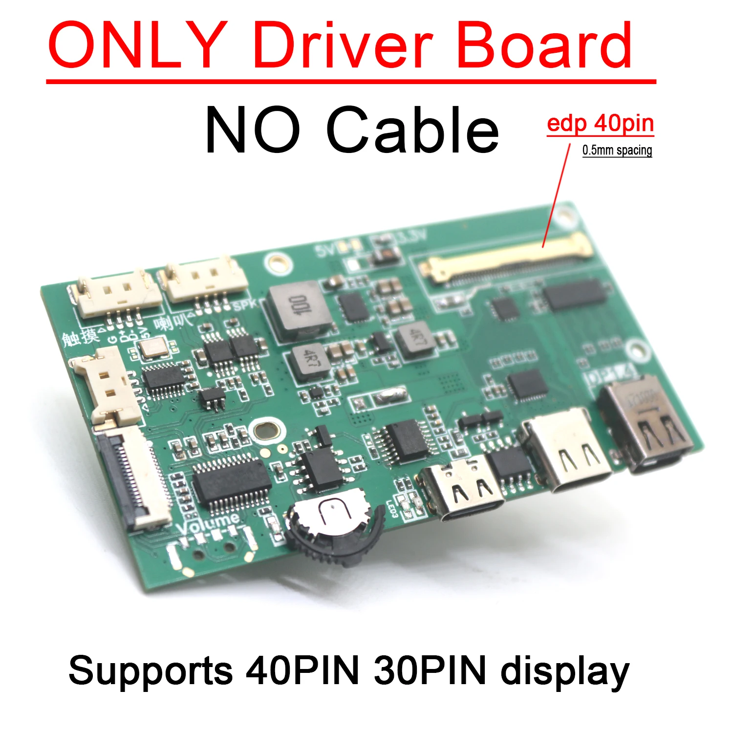 - Includes a 40-pin or 30-pin EDP connector, compatible only with EDP output signals, not LVDS, supporting various resolutions like 1920*1080, 2560*1440, 3840*2160, and 5120*2880.