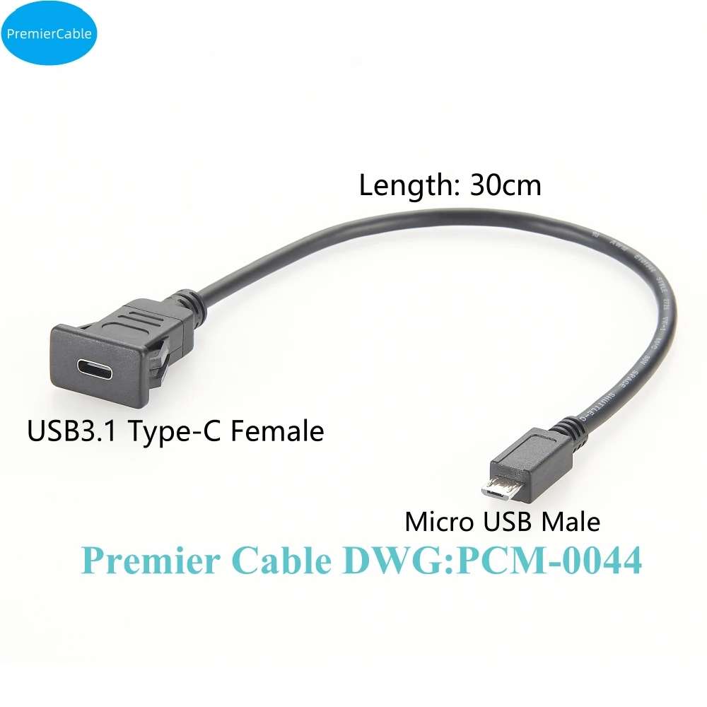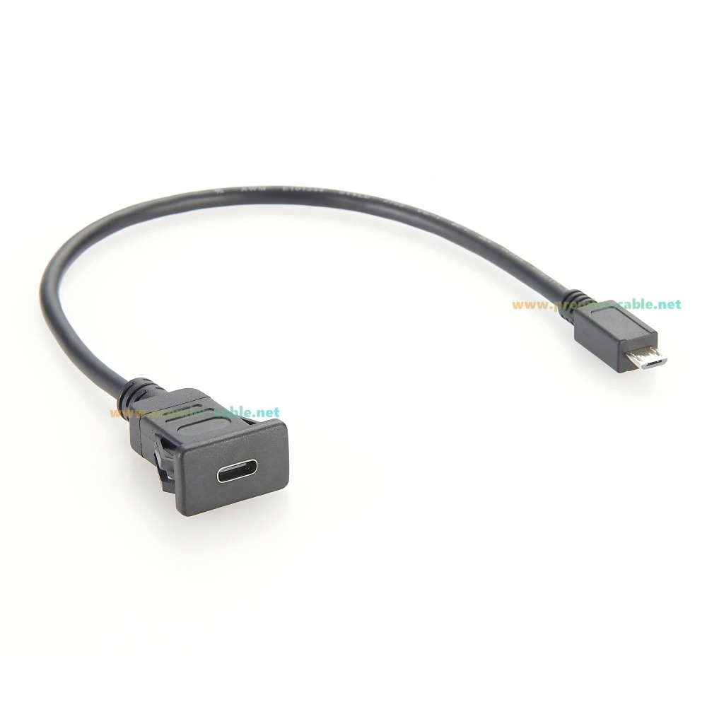 Experience seamless connectivity with this durable and versatile 0.3-meter cable. Crafted for professionals and enthusiasts alike, it combines high-speed data transfer and robust construction in a sleek black design. The USB 3.1 Type-C female connector with a slim, square flush mount offers innovative, high-tech style, ideal for embedded panel installations. The Micro USB 2.0 male end is compact and ridged for easy grip, ensuring reliable connections. Made from premium, wear-resistant, folding-resistant, and corrosion-resistant materials, this cable ensures long-lasting performance in demanding environments. Perfect for smartphones, tablets, digital cameras, industrial automation, and gaming devices, it enhances your setup with stability and speed.