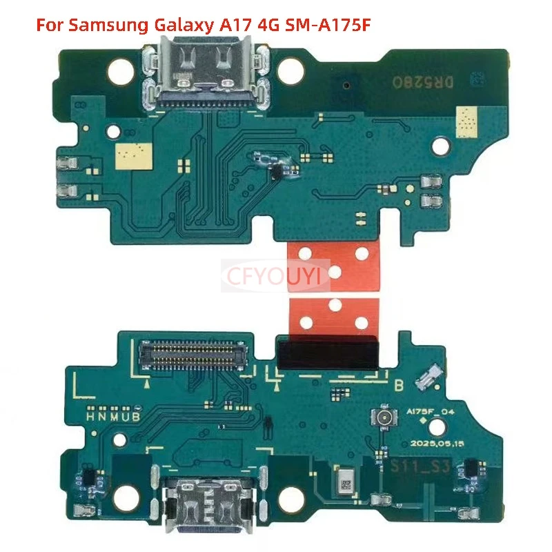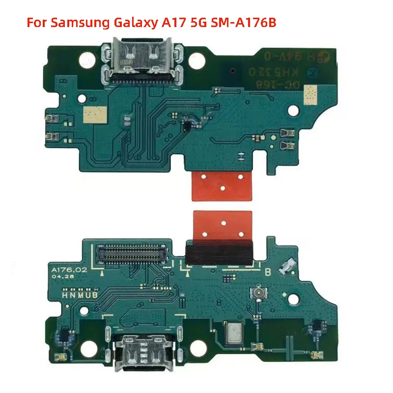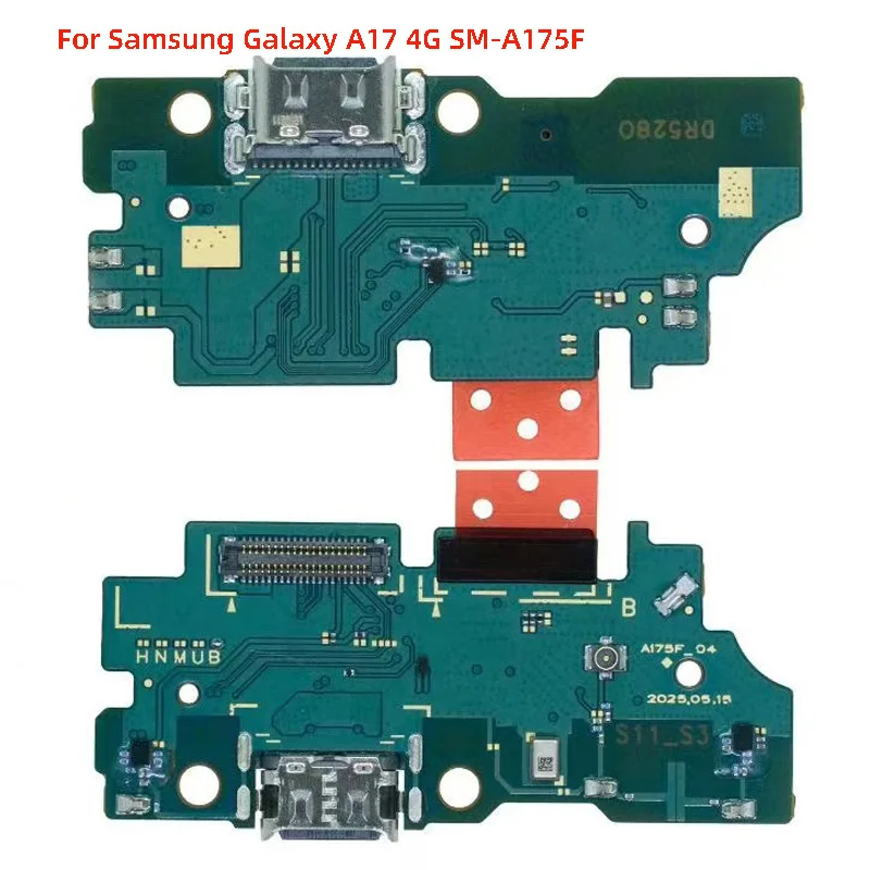 Experience seamless charging with this high-quality USB charging connector port flex cable, specially designed for Samsung Galaxy A17 5G SM-A176B and A17 4G A175F models. Crafted as a durable bar-type dock connector, this component offers a reliable connection between your device and charging cable. Its vivid green PCB, featuring a matte finish, highlights a compact layout with surface-mounted resistors, capacitors, and gold-plated contact pads, ensuring precise electrical connectivity. The metallic USB Type-C port adds a sleek, modern look, while the black chip and tiny test points emphasize the technical precision. Perfect for replacing worn or damaged parts, this tested and certified component guarantees optimal performance, restoring your device’s charging capabilities efficiently and confidently.