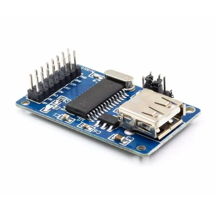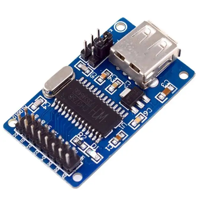 Experience seamless USB connectivity with this compact 50mm x 34mm blue PCB module featuring a 12MHz crystal oscillator, onboard 3.3V LDO regulator supporting up to 800mA, and support for FAT file systems and various USB storage devices including U disks, hard disks, and card readers. It offers multiple communication interfaces such as an 8-bit parallel port and asynchronous serial port, with control lines for read, write, chip select, and interrupt output. Compatible in device mode with CH372 and host mode with CH375, this SMD-packed, customizable module with a 2×8 connector, USB status indicator, and support for parallel or serial operation is ideal for embedded system integrations.