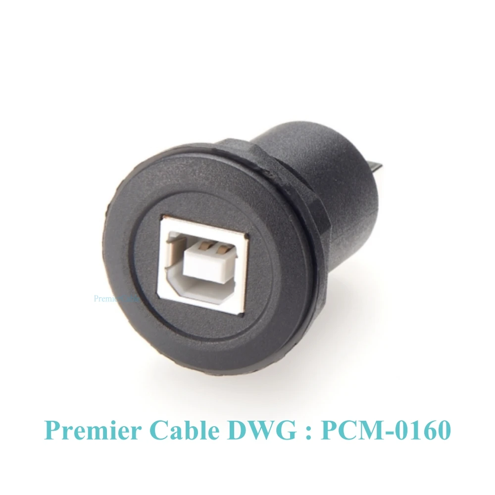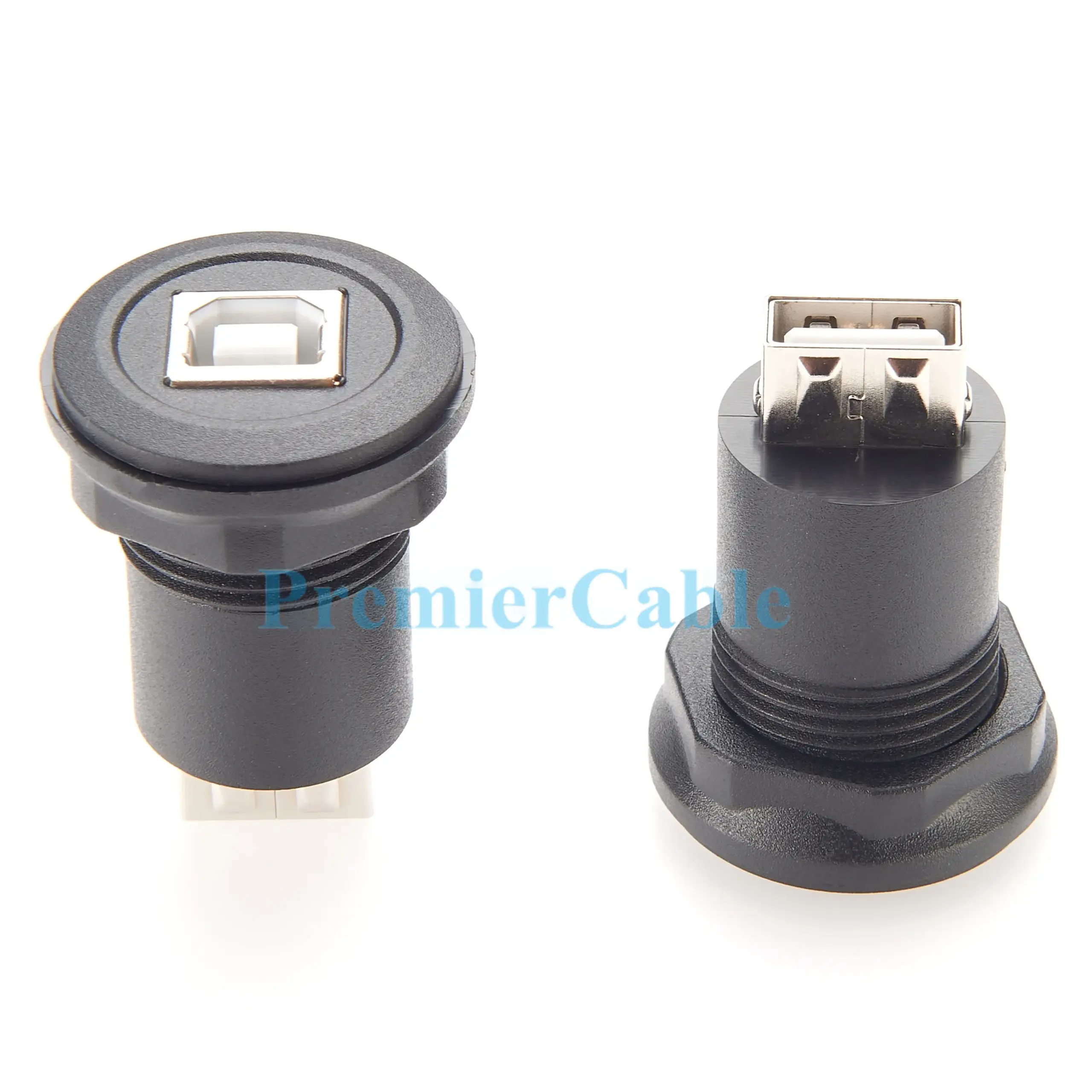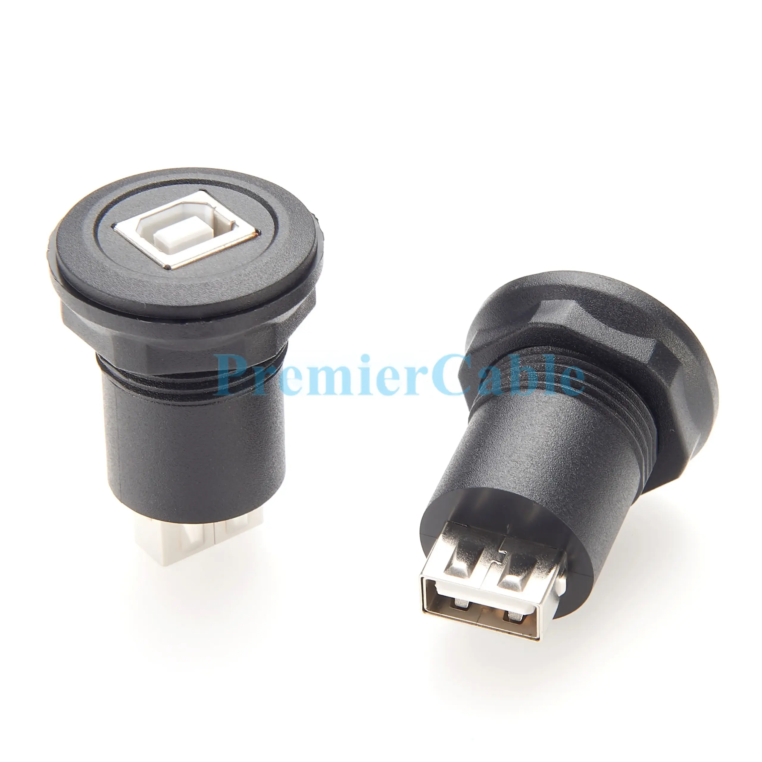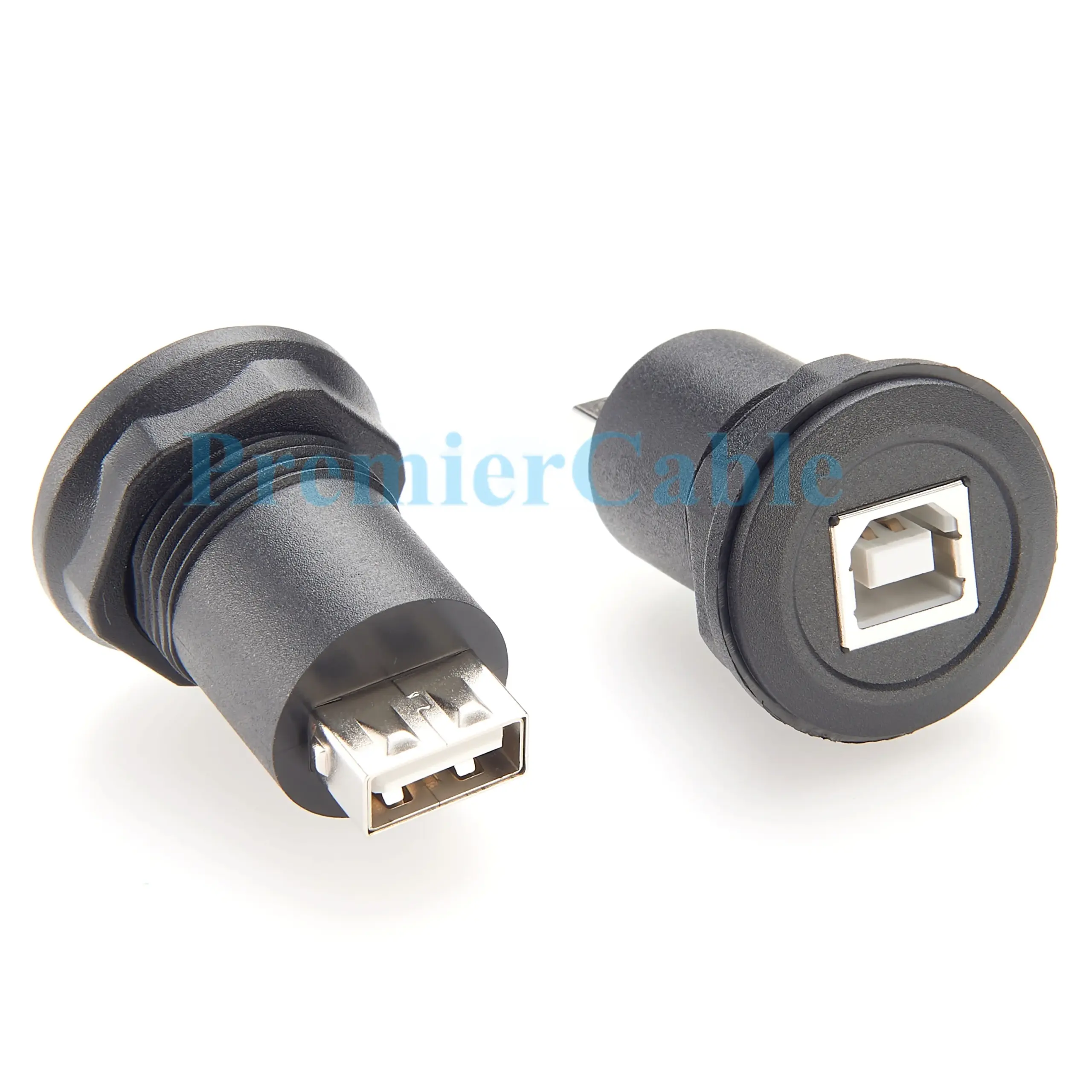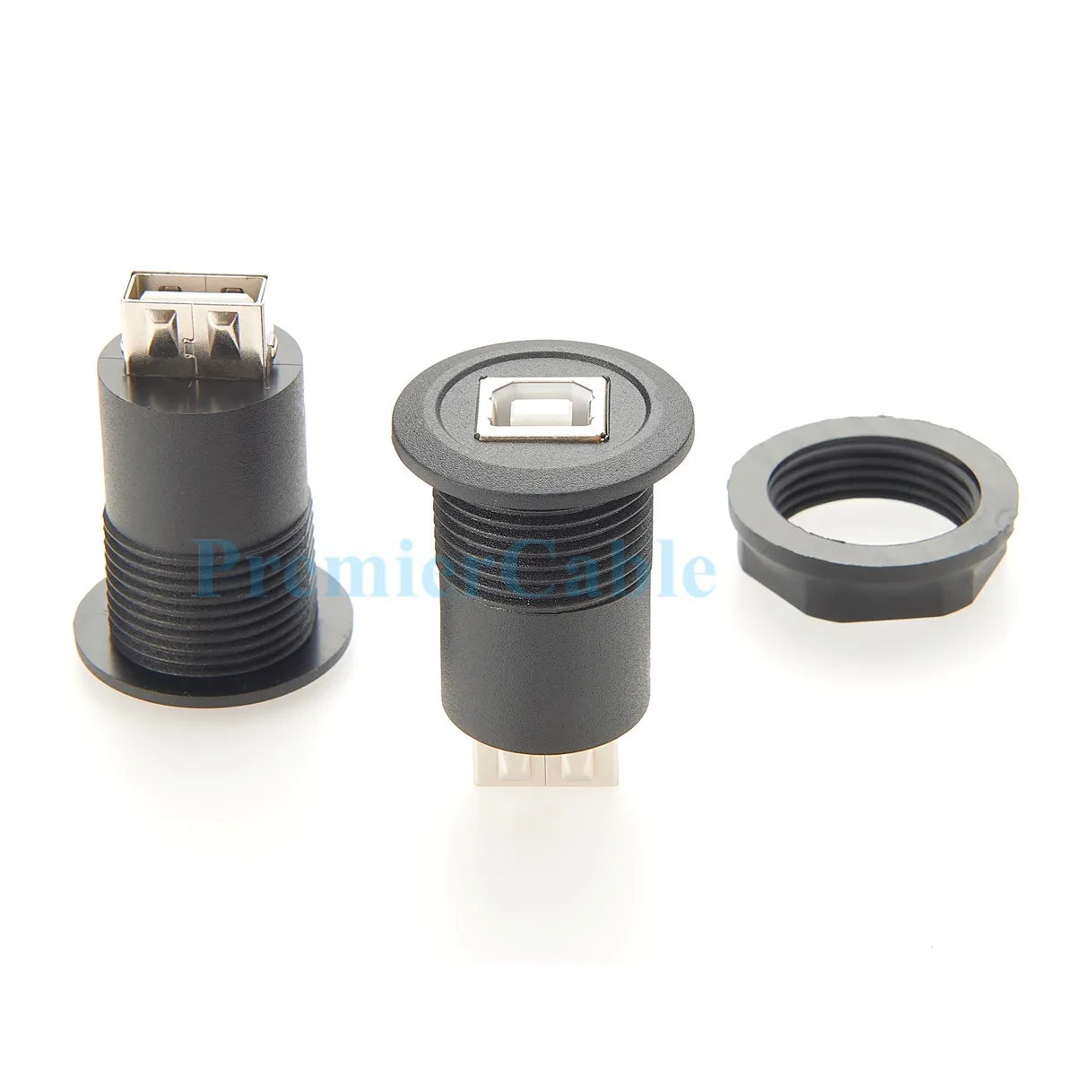 This sleek, black round panel mount USB adapter features a USB B Female connector and a USB 2.0 A Female connector, designed for quick and solder-free installation in panels with a 22-23mm cutout. With a diameter of 22mm and a hole size of 23mm, it supports USB 2.0 data transfer, ensuring reliable performance in professional settings such as cinemas, stages, and home audio/video systems. Crafted with a PVC jacket and a pure copper core, the RoHS-compliant device offers a durable, cable-less design, making it perfect for seamless integration into various electronic setups with minimal effort and maximum dependability.