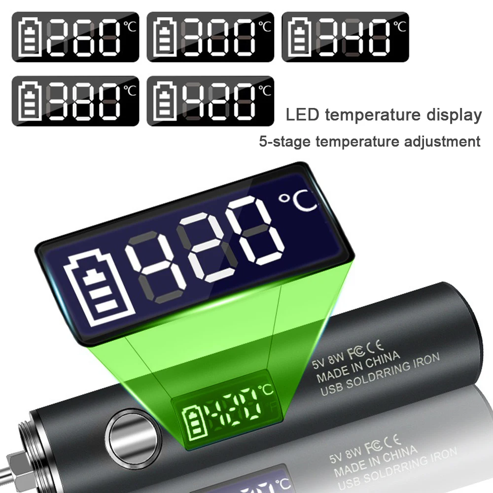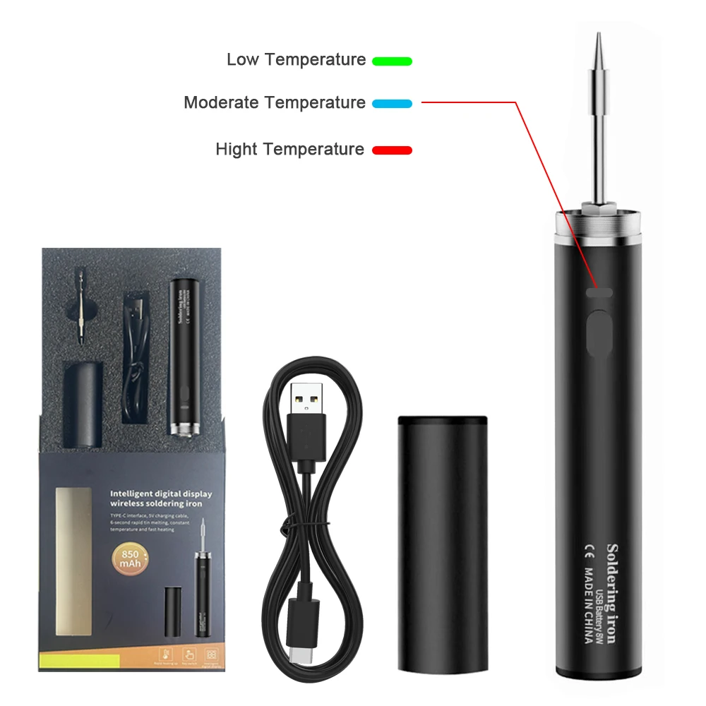Experience the convenience of the USB soldering iron, designed specifically for hobbyists and professionals alike. With a compact size of 240mm, this portable tool features an output power of 8W and a temperature range from 200°C to 450°C. Powered by a lithium battery, it allows for uninterrupted operation wherever you go. The simple long-press power function and temperature selection make it incredibly user-friendly, ensuring that soldering tasks are efficient and hassle-free. Visualize yourself effortlessly repairing electronics or crafting delicate items, as you handle this reliable and versatile tool.