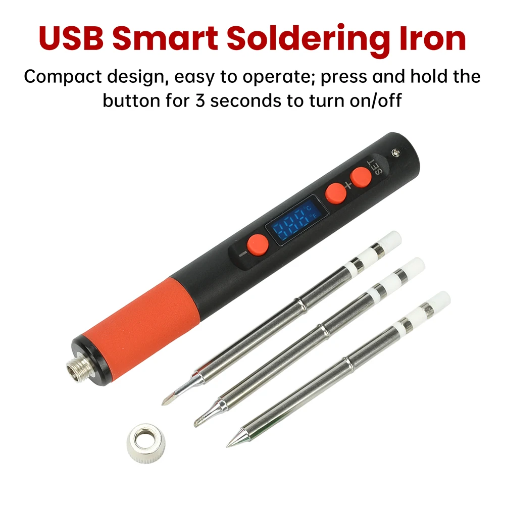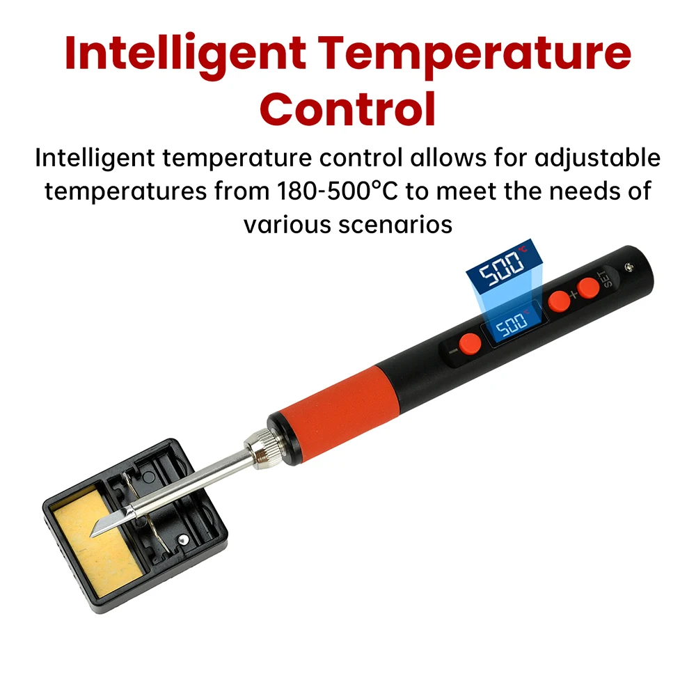 Experience precise soldering with this sleek USB soldering iron kit, featuring an adjustable temperature range of 180°C to 500°C and rapid heating in just 6 seconds at 20V. Powered via Type-C with support for PD 2.0/3.0 and QC 2.0/3.0 protocols, it delivers up to 65W of adaptive power for versatile applications, including circuit board repair, mobile phone servicing, and wiring projects. The compact design includes a clear LED display, vibration-activated sleep mode, and easy temperature calibration. Complete with a soldering iron, replaceable tip, stand, sponge, fixing nut, and power cable, this professional-grade kit offers reliable performance for demanding electronics work.