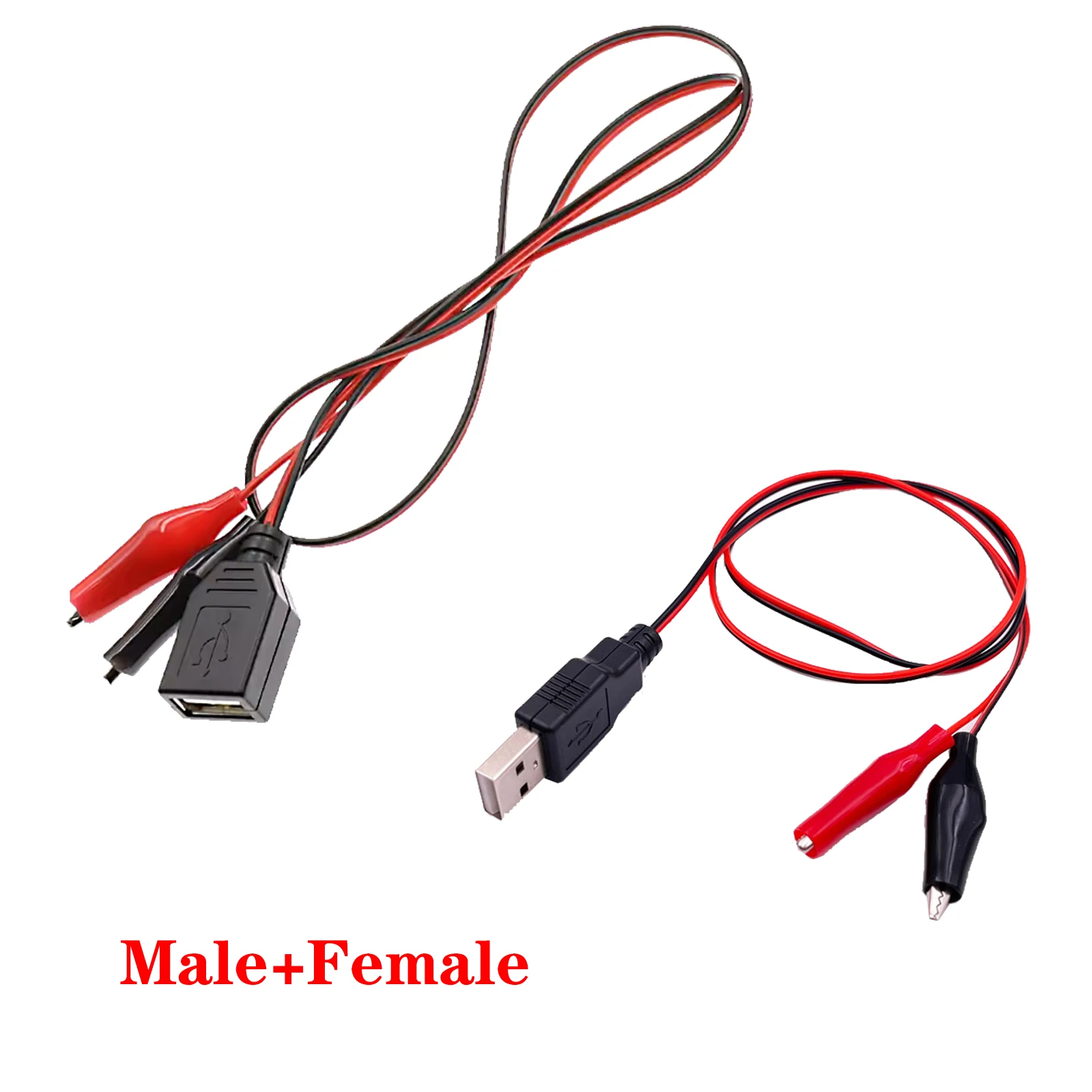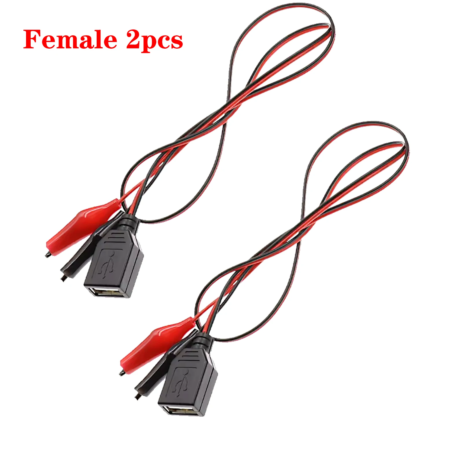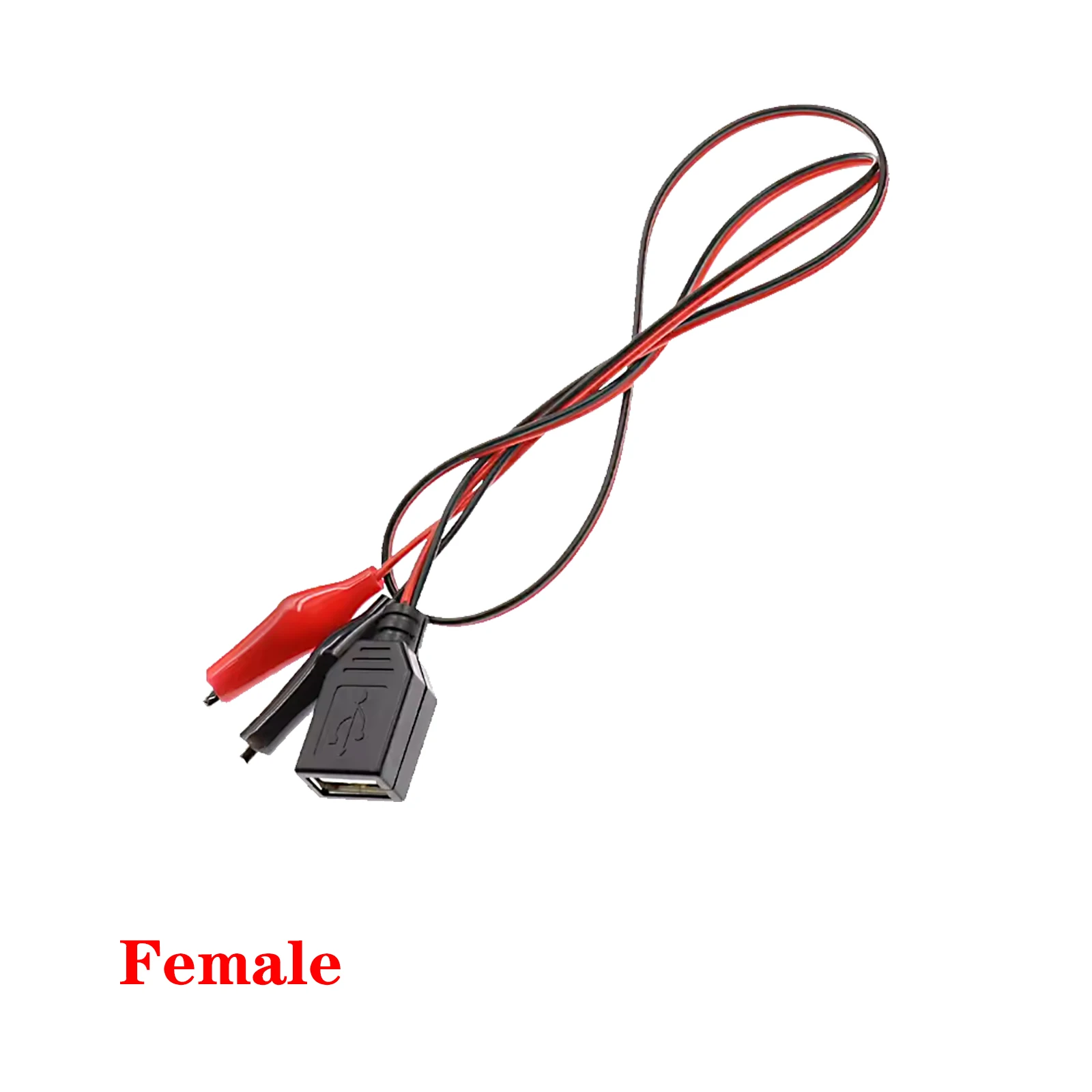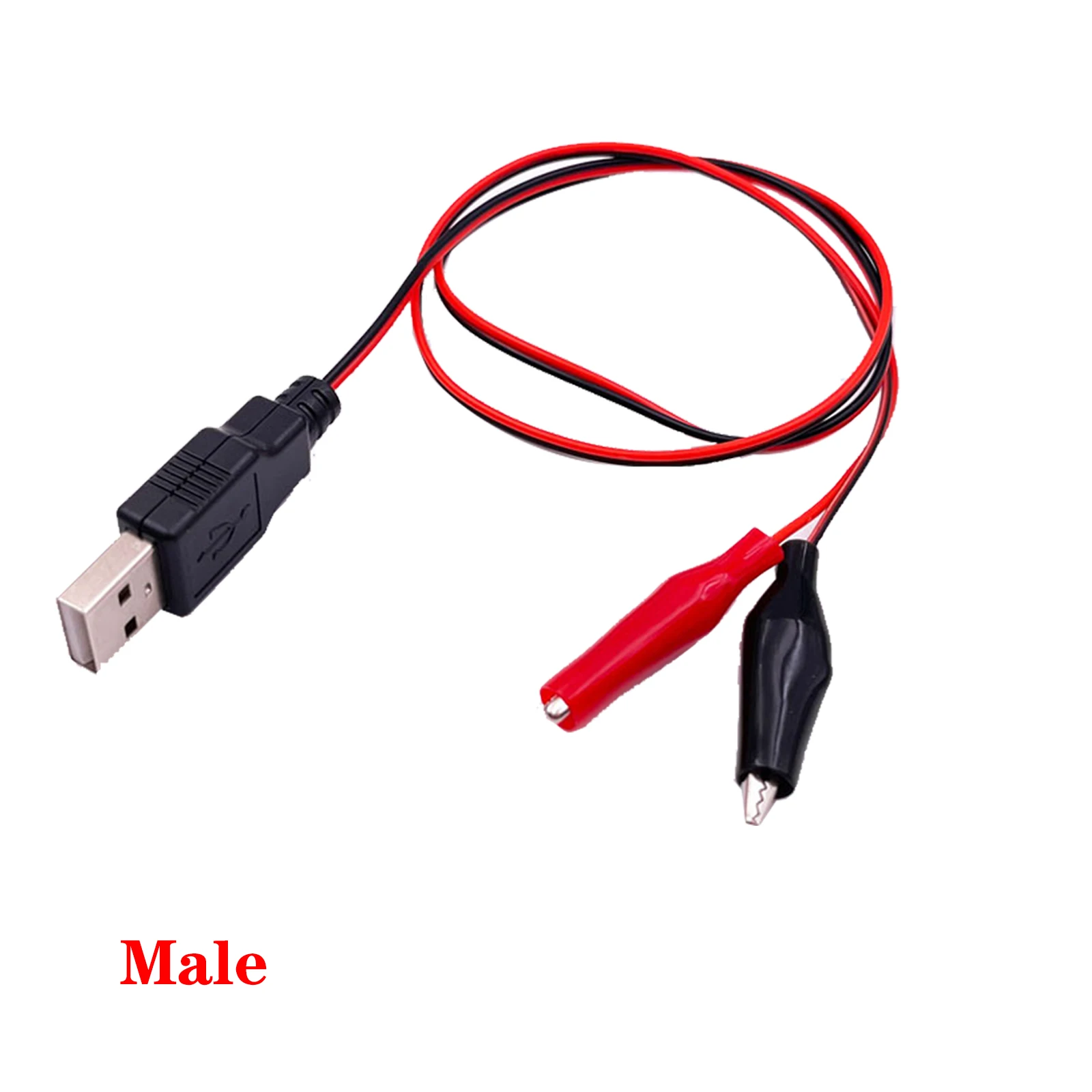 This set of two USB to alligator test clip cables measures 50 cm in length, featuring flexible, insulated PE wires with a USB Type-A male connector and two alligator clips—red for positive and black for negative poles. Available in configurations with two female clips, two male clips, or one of each, these durable, spring-loaded crocodile clamps have serrated grips for secure connections. Designed for electrical power supply testing and testing applications, they combine practical functionality with straightforward design, ensuring safe, reliable, and easy handling for all your electrical testing needs. Perfect for professionals requiring durable and precise testing tools.