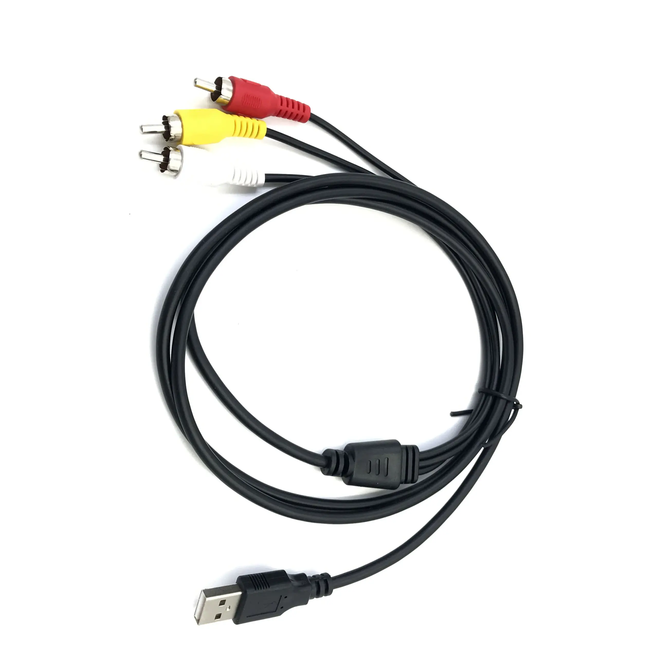 Experience seamless connection between your RCA-equipped camcorder and your USB-enabled TV or PC with this high-quality USB to 3RCA adapter cable. Designed for reliable performance, it measures 1.5 meters to give you ample reach for comfortable setup. The black outer jacket is flexible and durable, providing a sleek look that easily blends with existing electronic devices. Color-coded red, white, and yellow RCA connectors enable quick, intuitive connections for audio and video signals. Crafted using oxygen-free copper conductors and spiral shielding, this cable ensures minimum signal loss and maximum clarity. Its practical design with ribbed grip connectors guarantees secure, easy handling. Perfect for viewing your cherished videos in excellent quality, this cable turns your camera recordings into an unforgettable viewing experience.