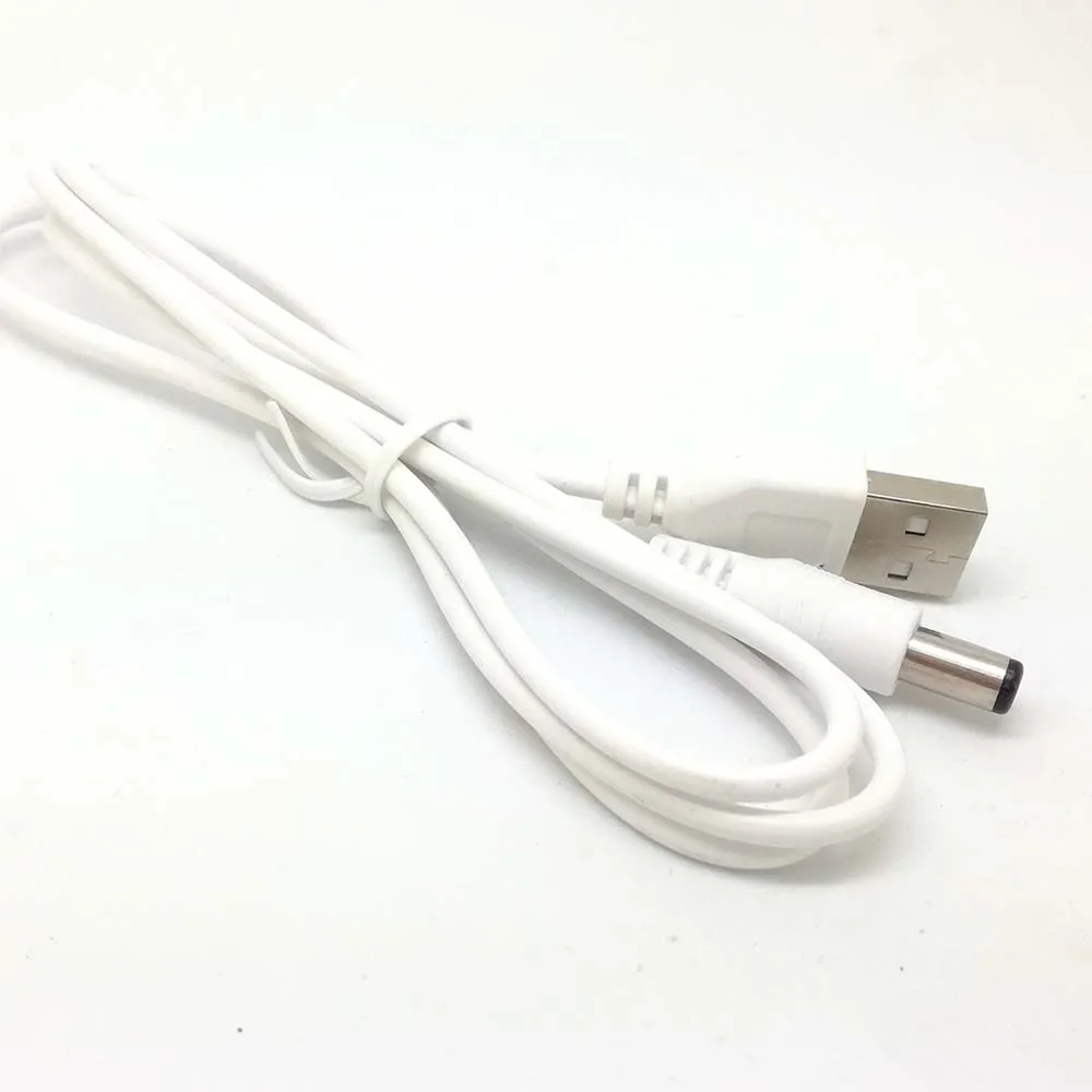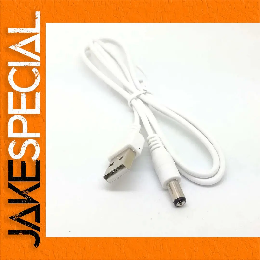This power cable features a modern, minimalistic design, showcasing a completely white aesthetic that complements any setup. It includes a Standard USB Type A male connector on one end, designed for simple connection to USB ports, while the other end presents a robust 5.5mm x 2.1mm barrel connector, ideal for charging small electronic devices. Measuring 1 meter (3 feet) in length, it's perfect for various charging scenarios, whether it's from your PC, travel charger, or car charger. The flexible and durable material ensures longevity, making it a reliable accessory for your devices that require a 5.5mm x 2.1mm barrel jack.