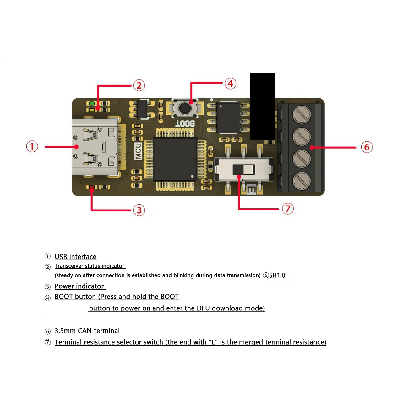 Enhance your automotive or industrial projects with this high-performance, portable CAN bus debugging tool. Its sleek design, versatile firmware support, and reliable data handling make it a trusted companion for professionals and enthusiasts alike. Imagine effortlessly diagnosing communication issues or developing firmware with confidence—this module puts you in control. Whether you're troubleshooting a complex network or working on firmware development, this device adapts seamlessly. Invest in this essential tool today and elevate your technical capabilities with confidence and precision.