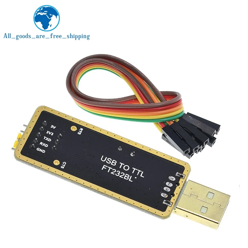 Experience seamless USB to TTL serial communication with this high-quality FT232RL/FT232BL adapter module, compatible with USB 2.0 standards. It features dual voltage support of 5V and 3.3V, ensuring versatile connectivity for a wide range of electronic projects, including STM sensors and switches. Designed to operate efficiently within a temperature range of -40°C to +85°C, this compact module offers reliable performance as a voltage regulator and serial interface, making it ideal for development boards, debugging, and electronic applications. Available in single or trio-piece DIY kits, its sleek black PCB with gold accents, vibrant yellow terminal connectors, and multicolored ribbon cable provide both functionality and a modern aesthetic.