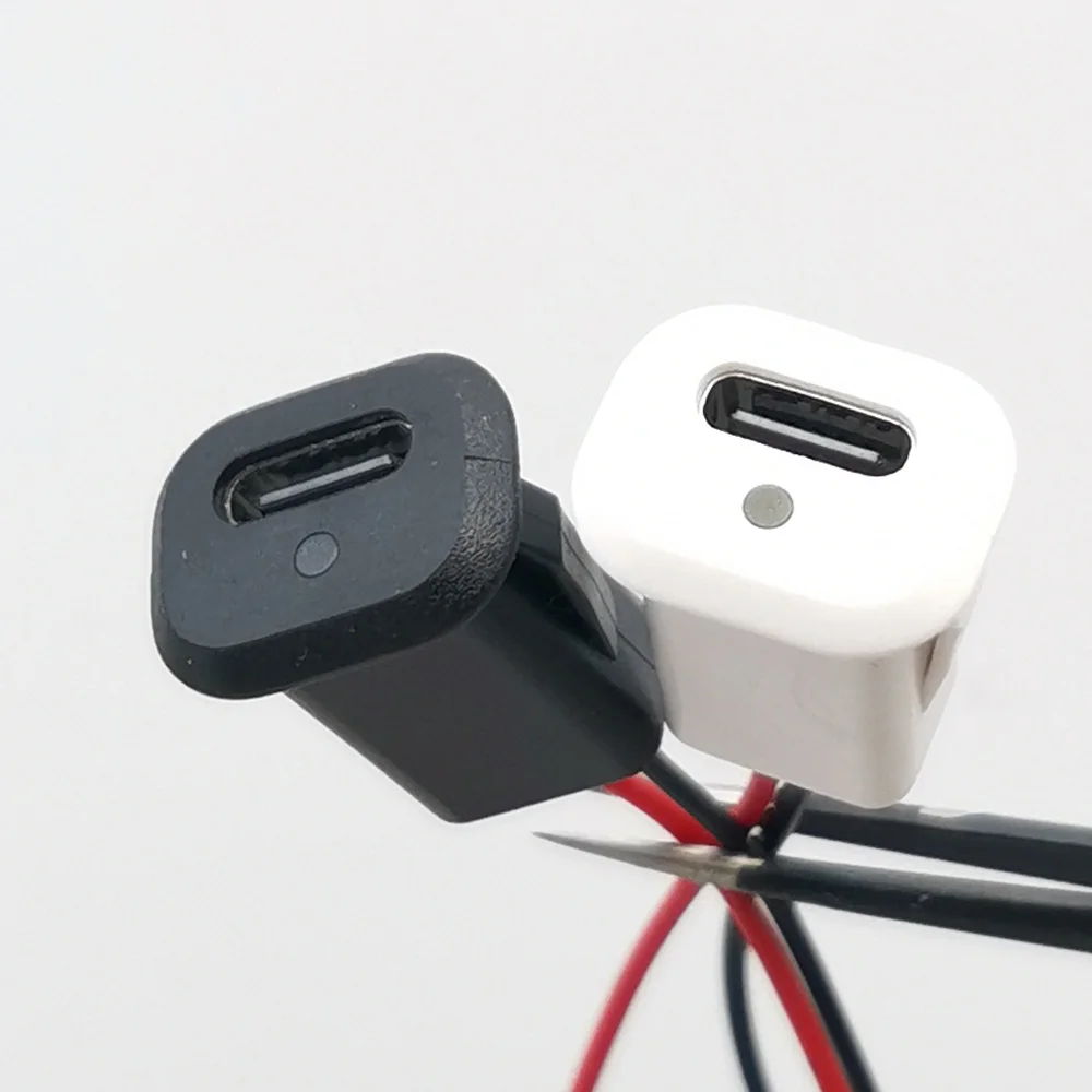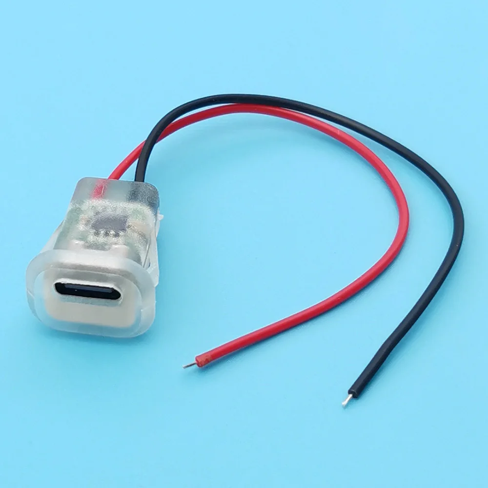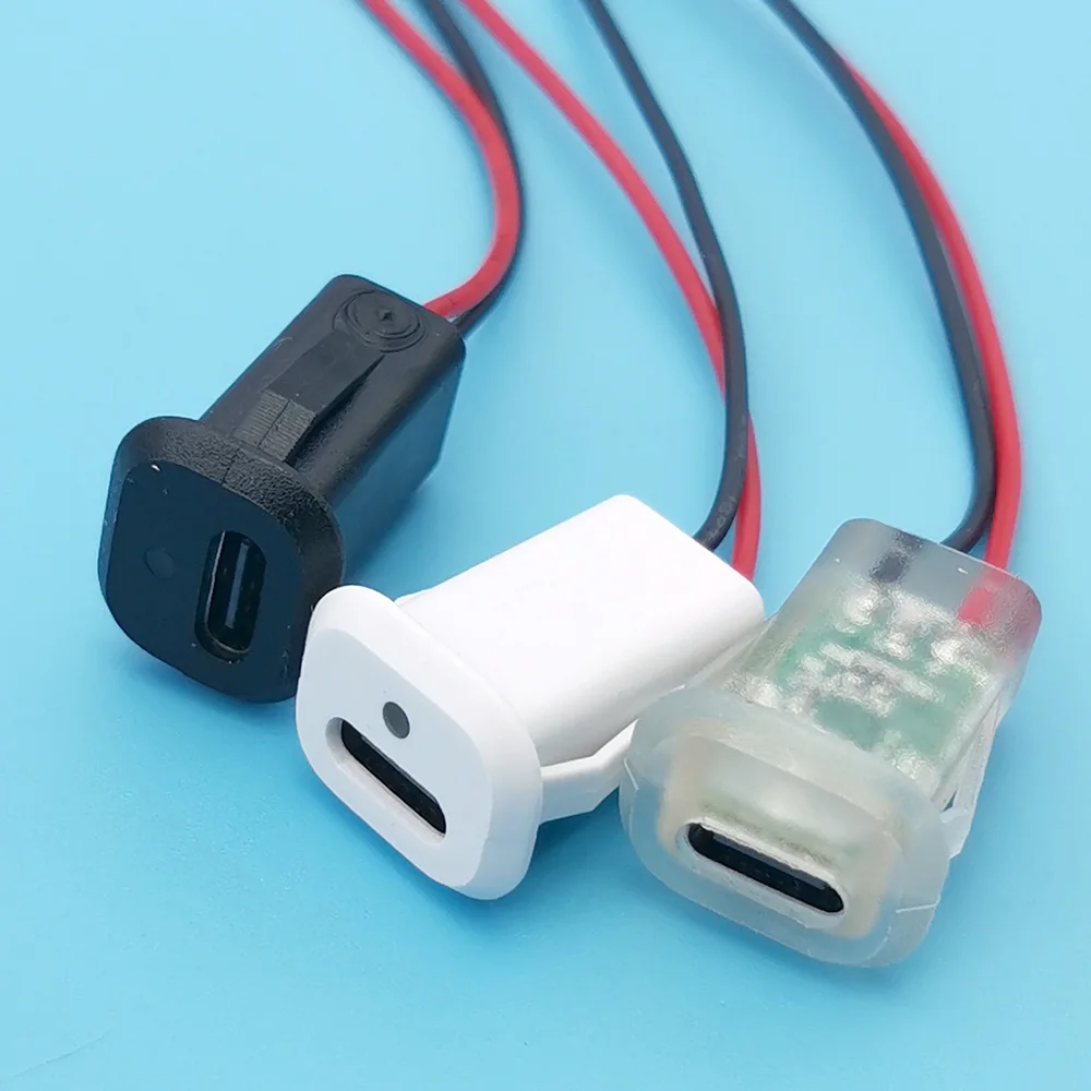 Experience the perfect blend of functionality and sleek design with this USB Type-C connector. Crafted for DIY enthusiasts and professionals alike, it features a modern elongated oval shape with smooth edges, offering a clean and minimalist aesthetic. The connector includes a built-in LED indicator that clearly shows charging status: red during charging and green when fully charged, providing instant visual feedback. Supported voltages range from 5V to 30V with a maximum current of 1.2A, making it ideal for lamp conversion, electronic modifications, or DIY electric vehicle projects. Available in three colors—transparent, black, and white—allowing you to match your specific setup. Its direct pressure connection simplifies installation, ensuring a secure and reliable fit for various applications.