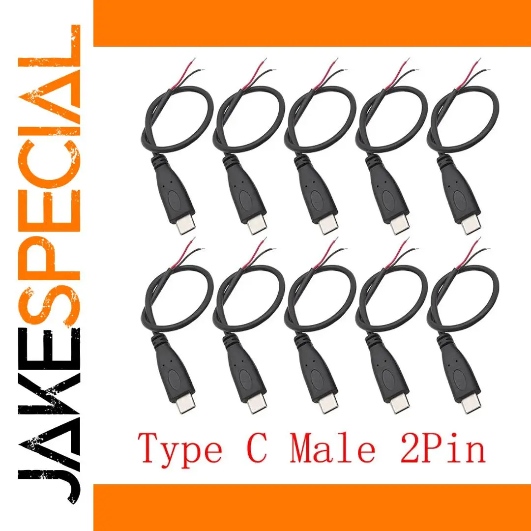 - Contains ten USB Type C male plugs with 2-pin configuration, each 30cm long, ideal for DIY repairs and custom electronic wiring. Made from high-quality metal and plastic components.