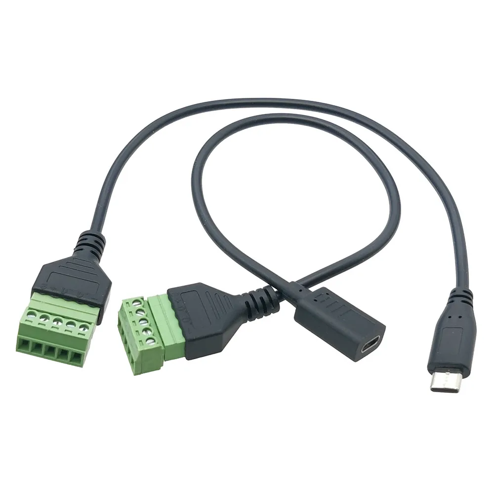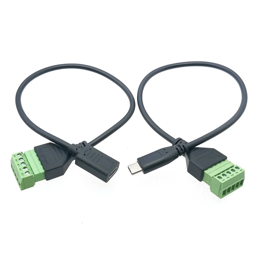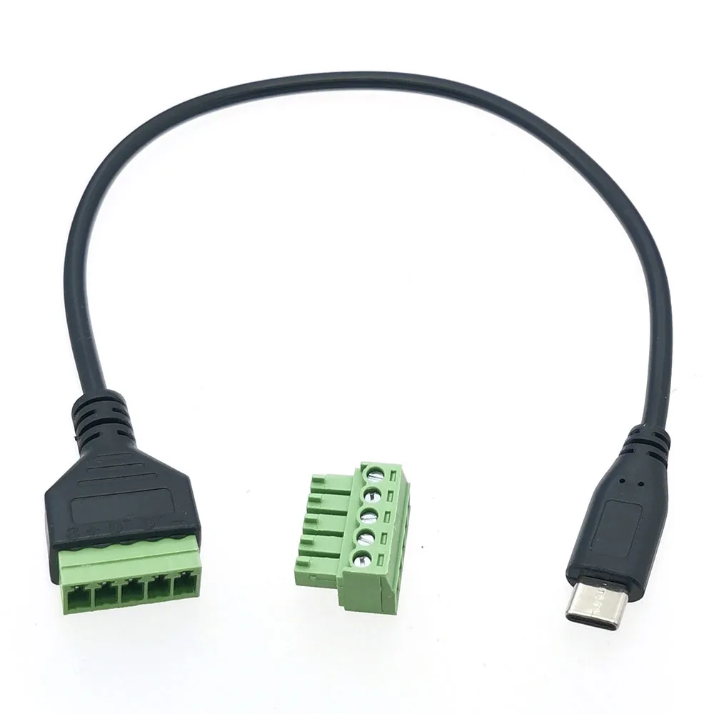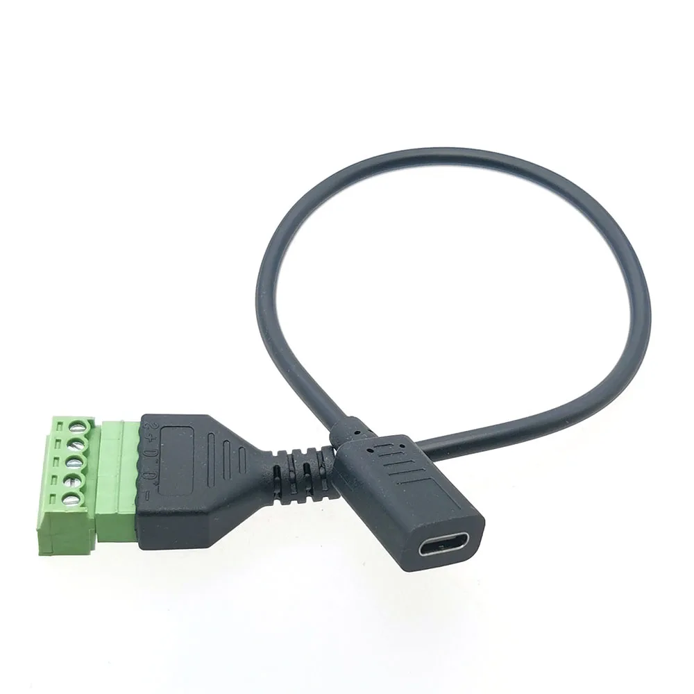 Experience seamless connectivity with this versatile USB Type-C to 5-pin solderless terminal connector cable. Designed for ease of use, it features a sleek black cable with a matte finish, perfect for custom electronics or repair projects. The connector system supports multiple voltages — 5V, 12V, 20V, and 30V — making it suitable for various power and data transmission needs. The secure bolt screw connection ensures a stable, reliable link between your devices and wires, minimizing connection loss. Available in both male and female variants, this assembly empowers you to build precise, professional-grade electrical setups. Whether for personal DIY projects or industrial applications, this product offers efficiency, durability, and confidence in every connection.