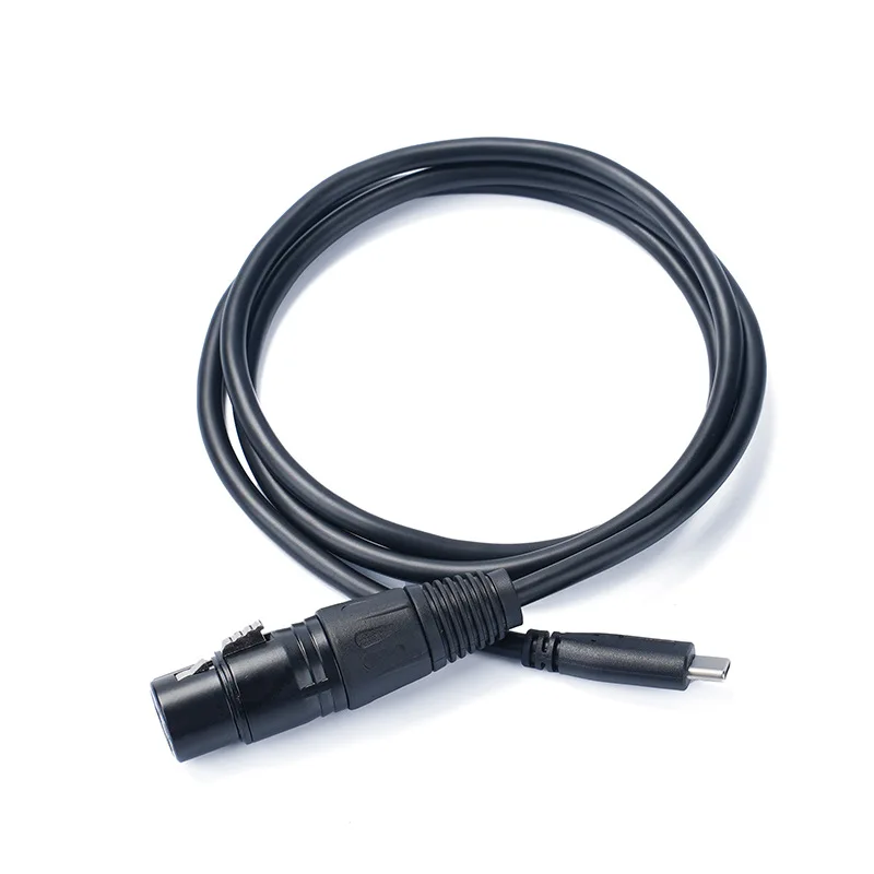Experience seamless audio connectivity with this durable USB Type C to XLR adapter, designed for professionals and enthusiasts alike. With a sleek, matte black finish, this 1-meter cable combines functionality with a minimalist aesthetic, perfect for recording studios, on-stage setups, or home audio systems. The compact Type C male connector features a textured grip and guide mark for easy, precise orientation, ensuring quick connections. The rugged 3-pin XLR female connector boasts ridged grooves for a secure grip and durability, capable of handling microphone and audio data signals efficiently. Its flexible cable ensures reliable performance without tangling, maintaining high-quality transfer of sound and power. Enjoy reliable, professional-grade audio connections with this high-performance adapter.