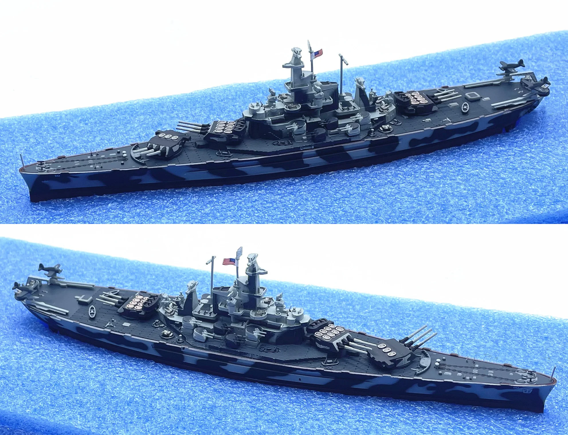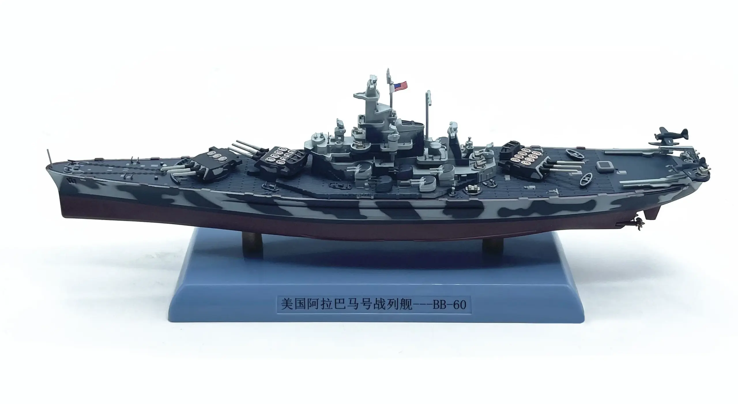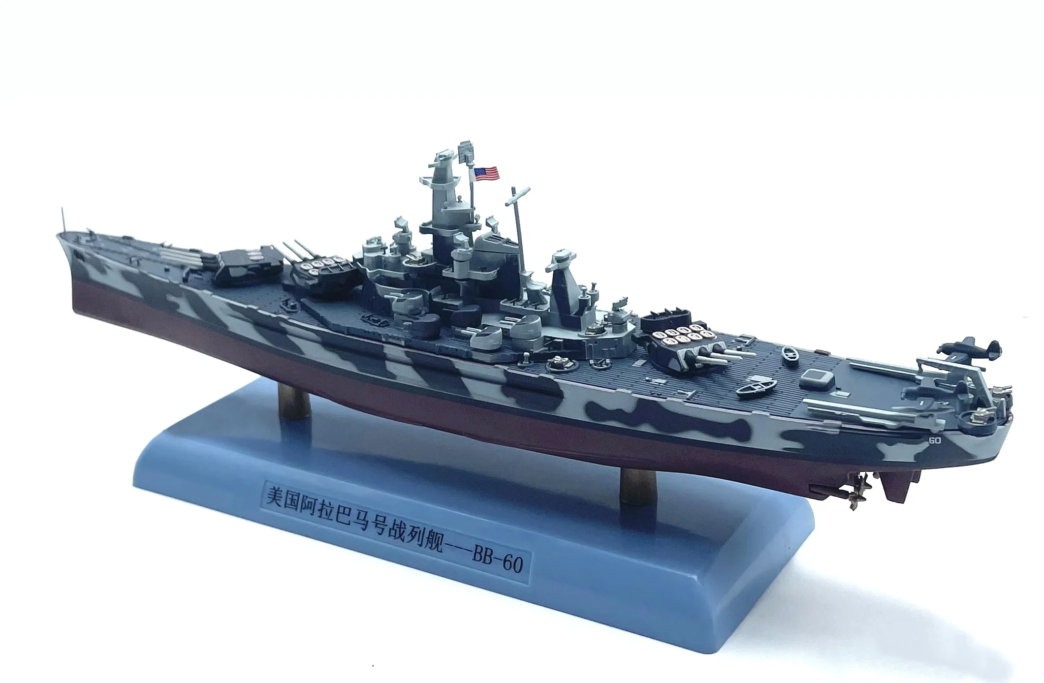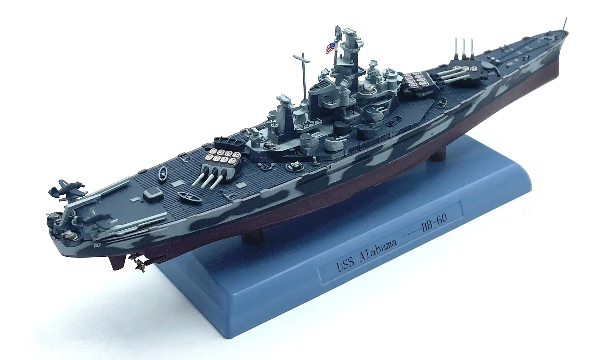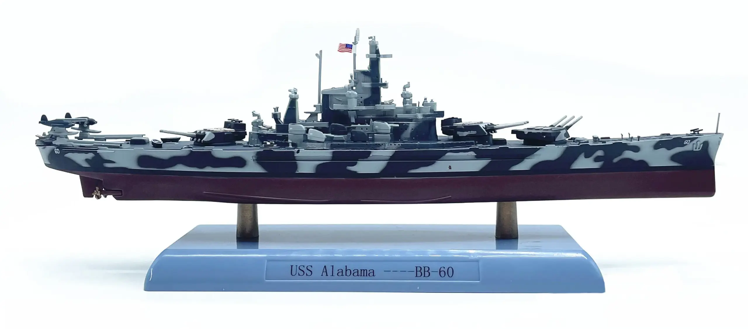 Experience the beauty of naval history with this meticulously crafted 1:1000 scale model of the USS Alabama (BB-60). Measuring approximately 20.5 cm in length and 4.2 cm in width, this model blends authentic historical details with fine craftsmanship. The robust alloy hull showcases a navy gray finish adorned with classic black camouflage patterns indicative of WWII naval vessels. Crafted with durable ABS plastic for the deck, buildings, and turrets, this model offers both visual appeal and long-lasting quality. Perfectly mounted on a blue base with engraved text, this stunning representation of the Alabama battleship is an ideal addition to any collection or display.