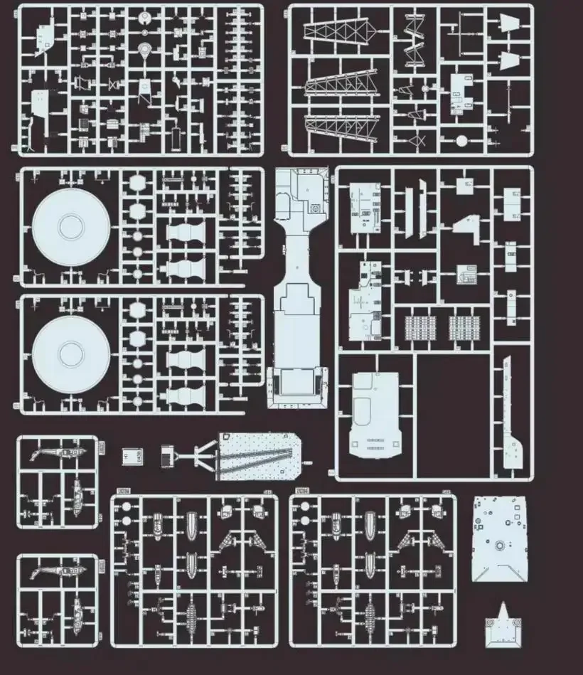- Technical specifications include a 1/350 scale, precise molded components, and compatibility with various model assembly tools.