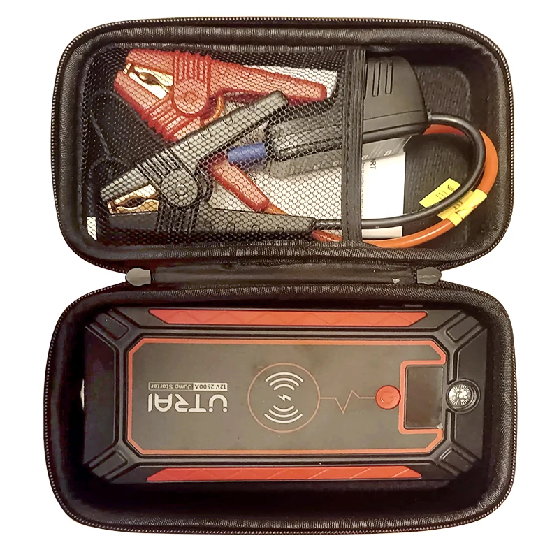 Protect your UTRAI 2500A Jump Starter power bank with this durable hard EVA travel case, measuring 230mm x 140mm x 75mm and weighing only 200 grams. Featuring waterproof, heavy-duty protection and anti-knock design, the case offers a secure, portable solution with a stylish two-color zipper—available in yellow—adding a bold touch. Its shockproof construction ensures your device stays safe during travel or storage, while the sleek, matte black exterior complements its rugged functionality. Designed specifically for the UTRAI 2500A, this rugged case combines practicality with durability, giving you peace of mind wherever your adventures take you.