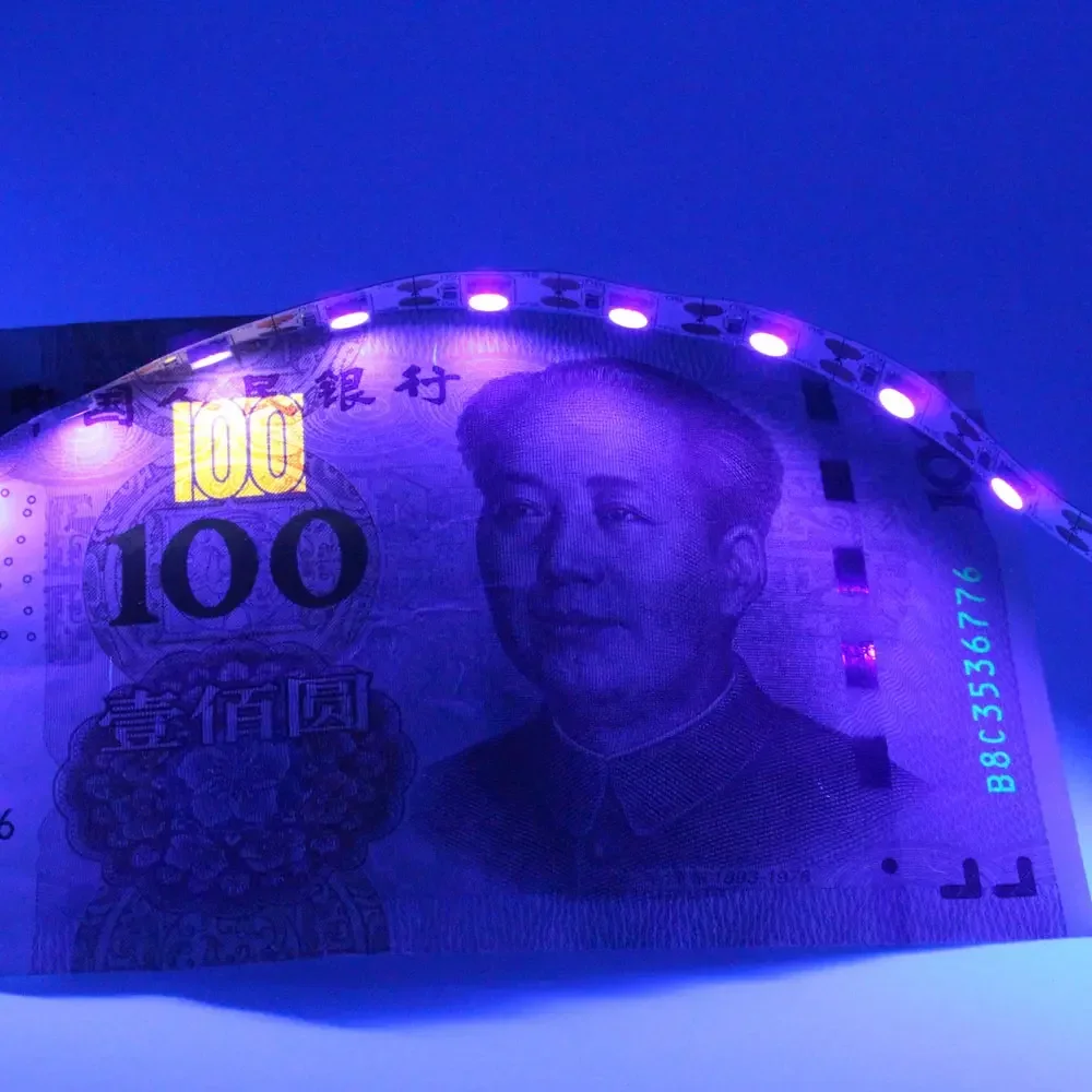 - This strip features high-brightness 5050 SMD UV LEDs operating at 395-405nm wavelength, providing intense fluorescence for various creative and professional uses in dark environments.