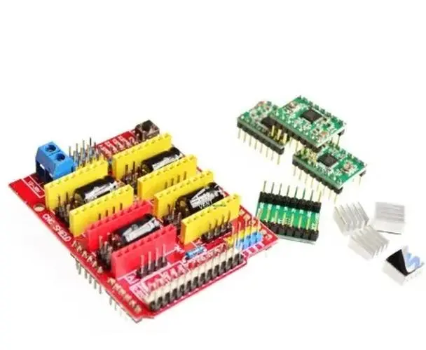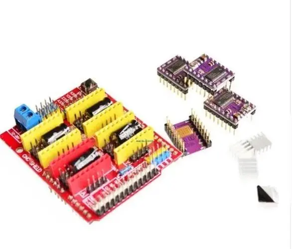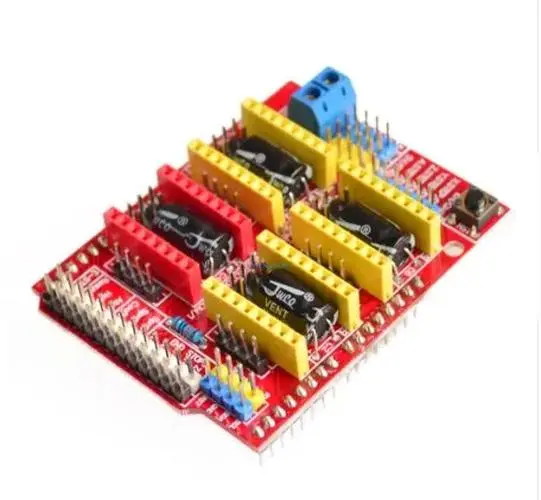Imagine having the perfect control system for your CNC engraving machine — this high-quality V3.0 CNC shield makes it possible. Designed for compatibility with Arduino UNO R3, it provides a robust platform to build or upgrade your CNC setup. Featuring four high-performance stepper motor drivers, either A4988 or DRV8825, it ensures precise motion control and smooth operation. The vibrant red PCB is organized with blue terminal blocks, black integrated circuits, and yellow relay modules, creating a sleek, professional aesthetic. The included heatsinks help keep the drivers cool during extended use. Whether you're customizing an existing machine or starting fresh, this shield offers reliable, cutting-edge functionality for your computer-aided projects.