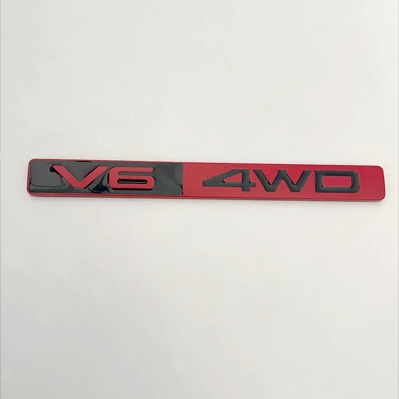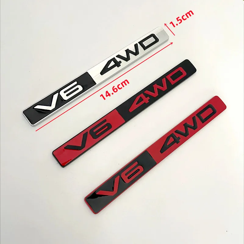 Elevate your car’s appearance with this sleek 3D metal V6 4WD emblem, crafted from durable alloy metal and measuring approximately 14.6 cm by 1.5 cm. Its modern, rectangular design features bold raised lettering that adds a three-dimensional effect for a striking visual impact. Offered in three finishes—black red, chrome, and red black—each provides a unique aesthetic, from sporty to sophisticated. Easy to attach, this badge is perfect for upgrading your vehicle’s trunk or rear body panel, instantly giving it a more refined and dynamic look. Whether you want to showcase your car’s power or personalize its style, this badge makes a premium statement that complements a wide range of vehicle models.
