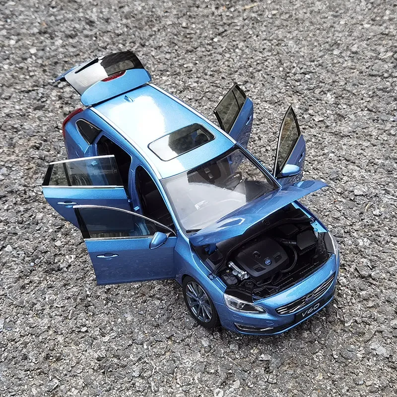 Experience the elegance and realism of this beautifully crafted 1:18 scale V60 Travel Edition model car. Measuring approximately 25 cm long, 12 cm wide, and 8.6 cm high, it features a vibrant blue and a pristine white version, both with glossy finishes and detailed accents. The model boasts functioning doors, hoods, and a sunroof, along with foldable mirrors and steerable front wheels linked to the steering wheel. The interior includes adjustable front seats and foldable rear seats, while the realistic damping wheels complete the look. Perfect for enthusiasts and collectors, this replica offers a highly detailed, tactile experience that brings your passion for premium vehicles into your home or office. Its meticulous craftsmanship makes it a standout display piece to cherish.