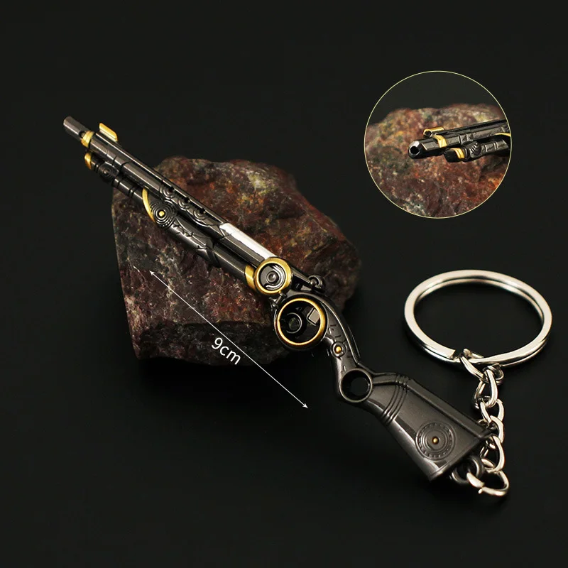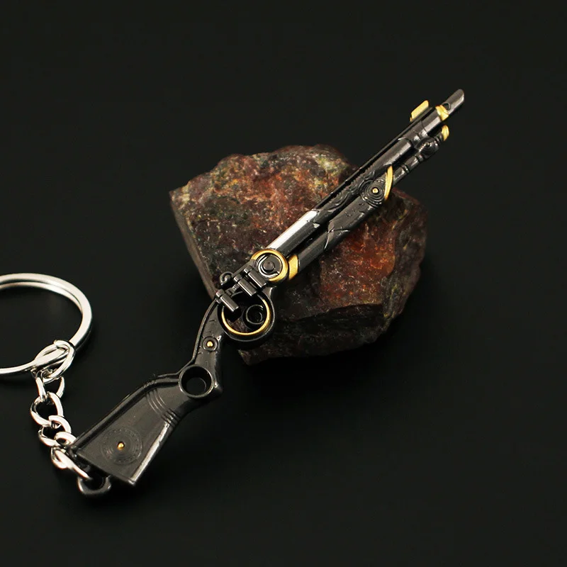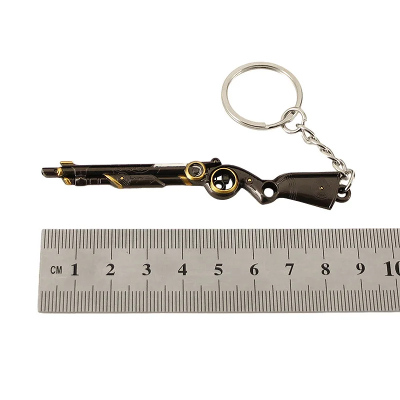 This 9 cm zinc alloy keychain features a sleek, futuristic design inspired by a tactical dagger, with a trendy geometric shape accented by gold and black details for a striking contrast. Its high-tech, mechanical-inspired textures and metallic shiny finish make it a stylish accessory suitable for all genders, perfect for decorating keys, bags, or accessories. The keychain includes an O-shaped buckle for quick attachment and measures approximately 9 cm in length with a manual measurement variation of 1-3 cm. Ideal for various occasions such as parties, weddings, or as a fashionable gift, this modern and durable piece adds a gaming-inspired, high-quality touch to your personal collection.