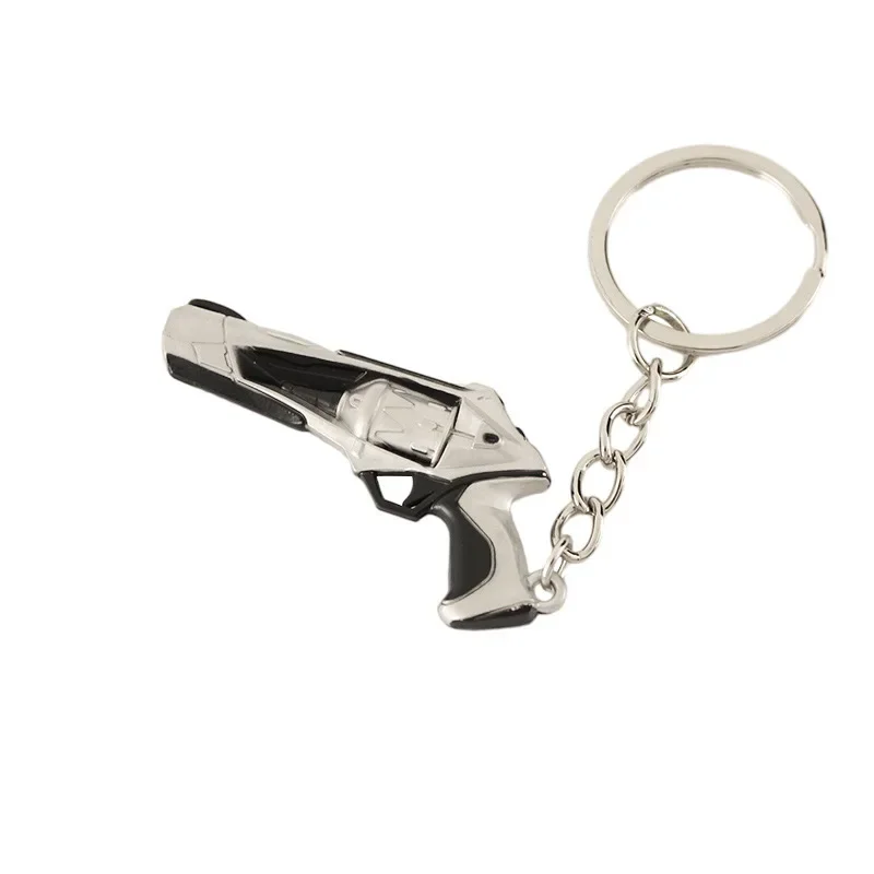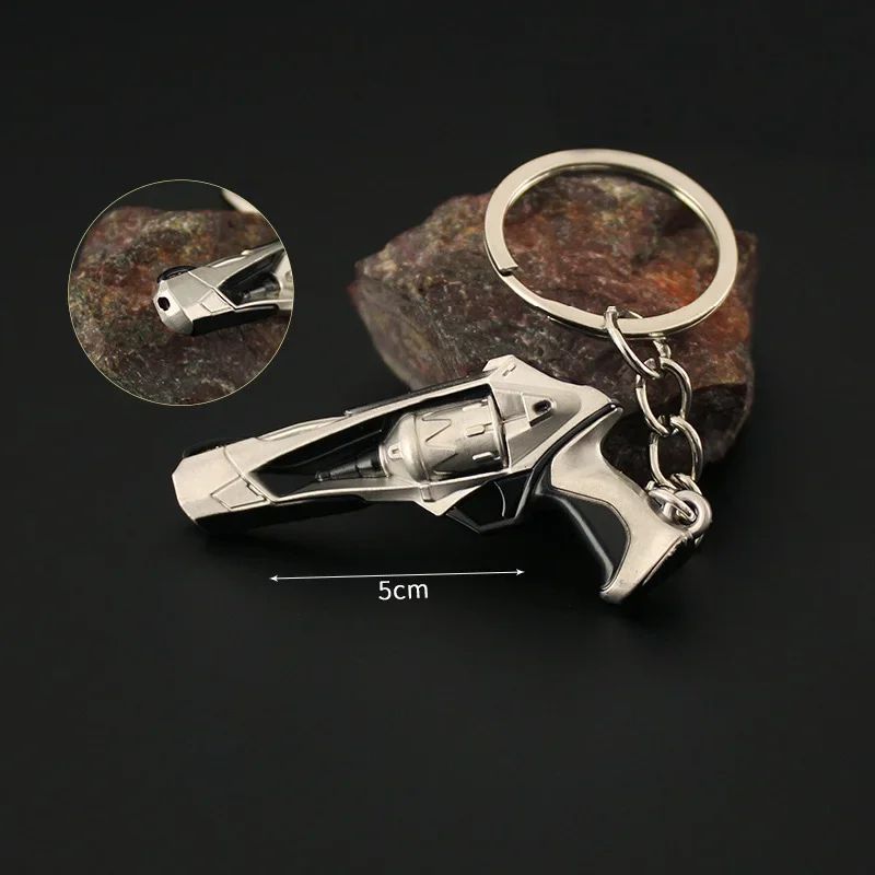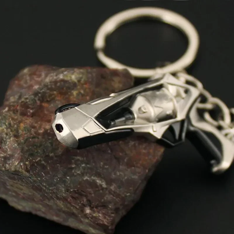 Immerse yourself in gaming culture with this striking Valorant Melee Reaver Model Keychain, inspired by the Ion Sheriff skin. Crafted from durable zinc alloy, it measures approximately 5cm in length, offering a compact yet eye-catching accessory. Its sleek, silver metallic finish reflects a futuristic aesthetic, with smooth lines and angular details capturing the essence of a modern firearm. This keychain is perfect for fans who want to showcase their passion subtly and stylishly. With a minimalist design and high-quality craftsmanship, it easily attaches to keys, bags, or accessories, making it an ideal gift or personal adornment to add a bold, masculine touch to your everyday essentials.