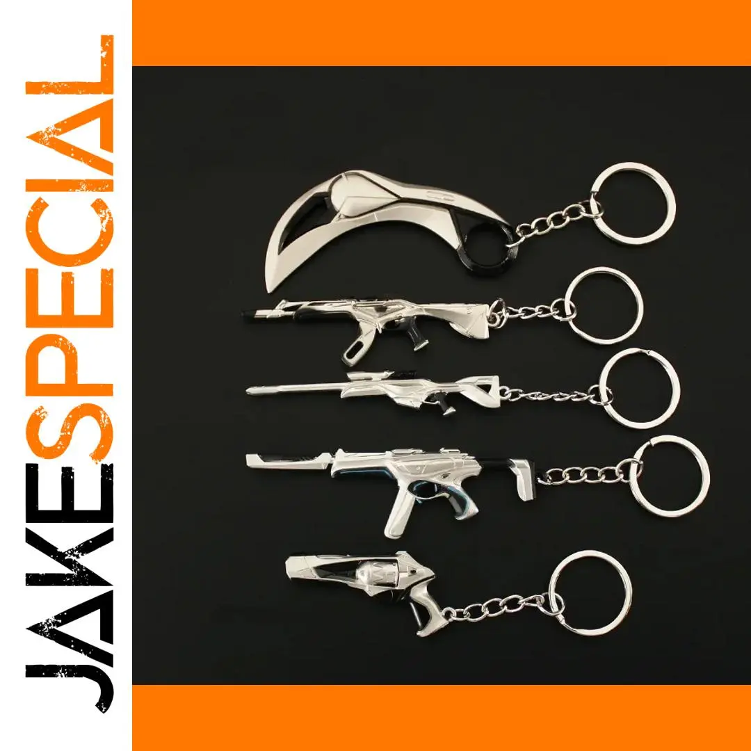 Step into the world of Valorant with this captivating collection of miniature keychains, beautifully crafted from durable zinc alloy. Each piece showcases highly detailed replicas of iconic weapons, captured with sharp contours, textured handles, and authentic proportions that evoke realism and style. The sleek silver or black polished finishes accentuate their modern, tactical aesthetic, making each keychain not only a functional accessory but also a statement piece. Whether you want to adorn your keys, bags, or display case, these meticulously designed models allow you to carry a piece of Valorant’s intense universe with you everywhere. They are perfect for passionate fans and collectors eager to showcase their love for the game’s detailed weaponry.