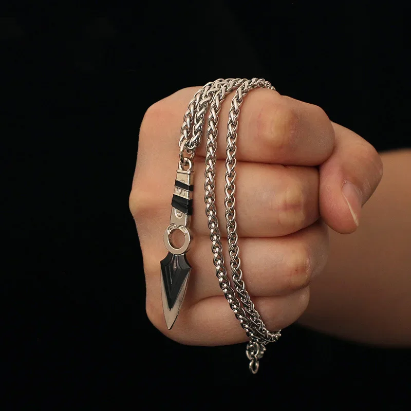 Immerse yourself in the edgy, modern aesthetic of this Valorant Melee Reaver Model keychain. Crafted from durable zinc alloy with a sleek silver finish, it measures approximately 5cm in length, perfect for adding a tactical touch to your keys, bags, or accessories. Its spike-like design is inspired by a kunai or small dagger, featuring clean lines, a reflective surface, and a trendy, minimalist style that appeals to fans of the game and metal enthusiasts alike. The small rectangular attachment at the top adds a weapon-inspired detail. Its sturdy construction ensures durability, making it both a fashionable statement piece and a practical accessory for various occasions such as parties, weddings, or casual outings. Personalize your everyday carry with this striking and sophisticated charm.