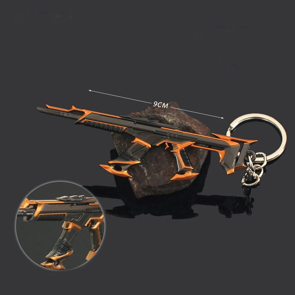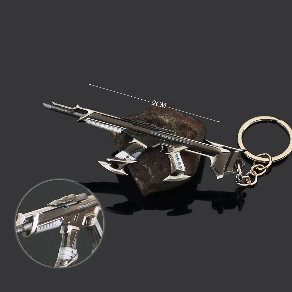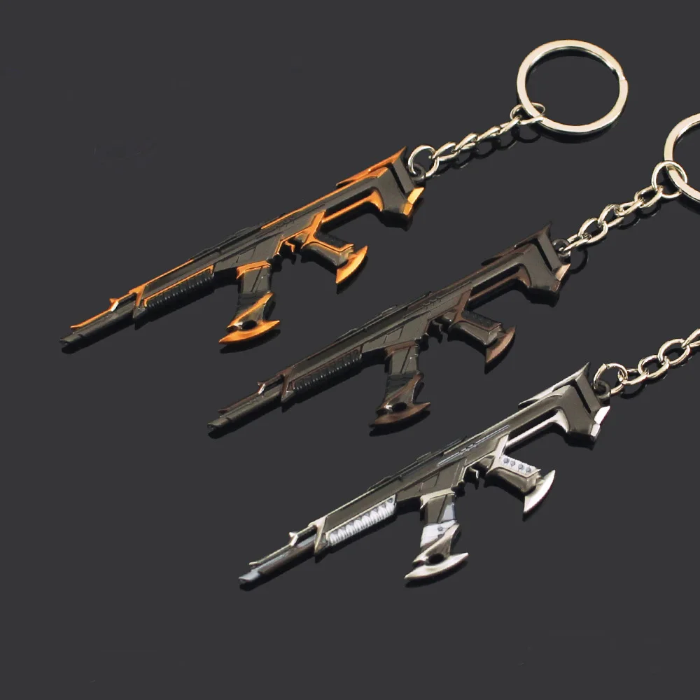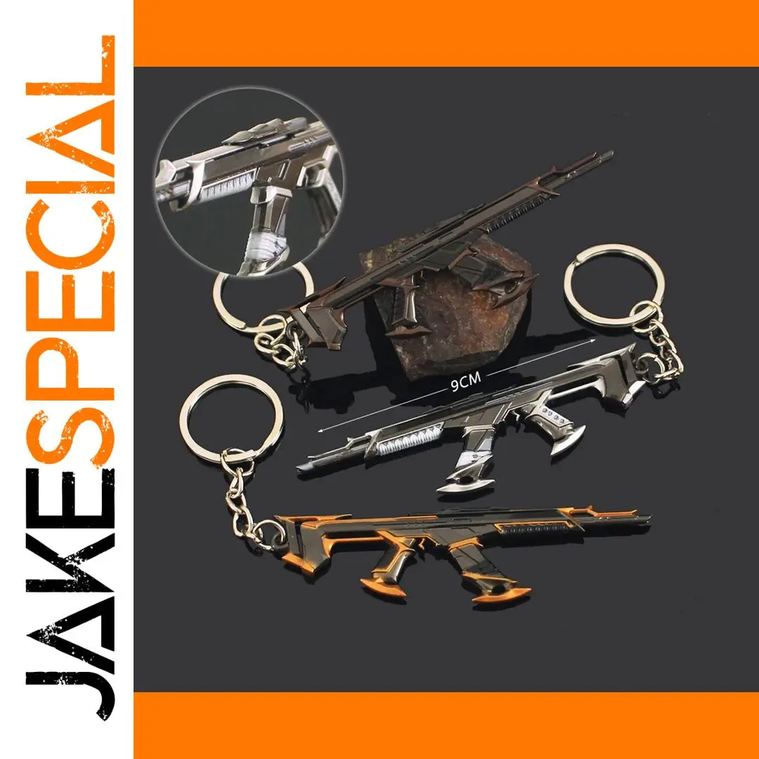 Elevate your accessory game with this highly detailed Valorant Keychain crafted from durable zinc alloy, measuring approximately 9cm in length. Featuring a sleek metallic finish in gunmetal black, silver, and four distinct styles, each keychain showcases intricate modeling of barrels, grips, triggers, and contrasting accents in orange or copper for a bold pop of color. Its rugged, industrial design is complemented by a spike-patterned keyring and a sturdy O-shaped buckle for secure attachment to keys, bags, or decorative items. Perfect for gaming enthusiasts and collectors, this versatile accessory combines craftsmanship, durability, and a modern aesthetic that captures the edgy spirit of Valorant.