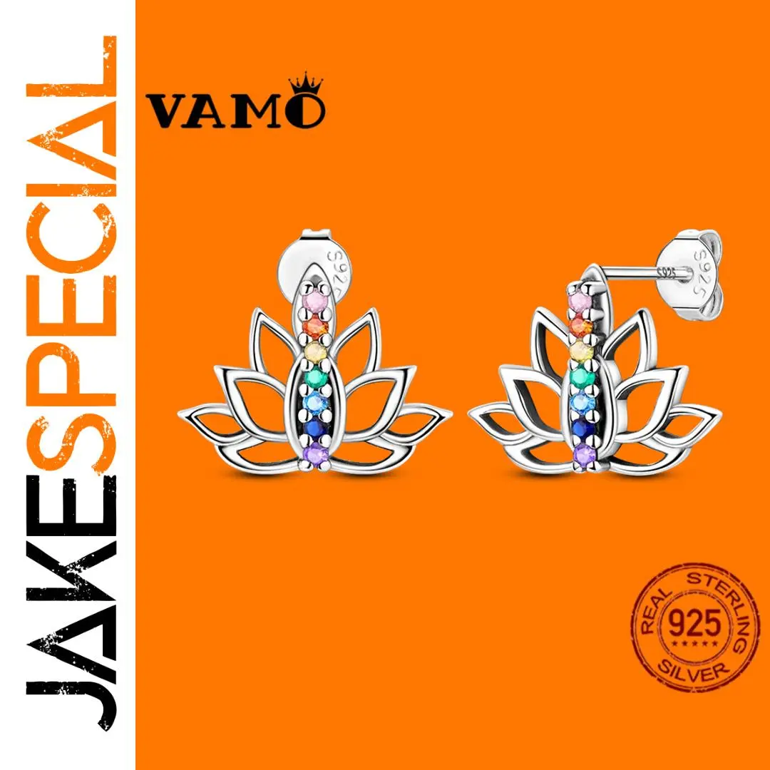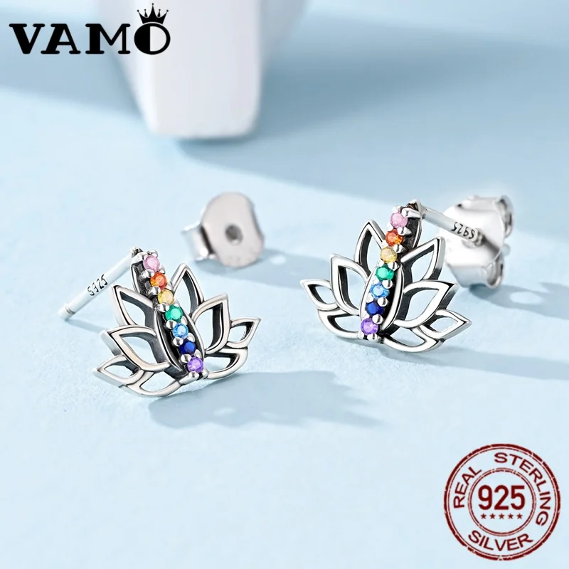 Discover these stunning, colorful lotus-inspired earrings that instantly elevate your elegance and charm. Crafted from high-quality 925 sterling silver, they showcase a delicate, plant-shaped hoop design with intricate openwork resembling graceful flower petals and leaves. The elongated, pointed petals fan outward, creating a harmonious floral silhouette perfect for formal occasions like weddings and anniversaries. At the center, vibrant zircon stones in a rainbow of colors—pink, orange, yellow, green, blue, purple, and violet—are arranged vertically along the stem, sparkling beautifully. Lightweight and finely crafted, these earrings blend modern style with timeless sophistication. They are perfect for adding a pop of color and elegance to your special moments or daily outfits.