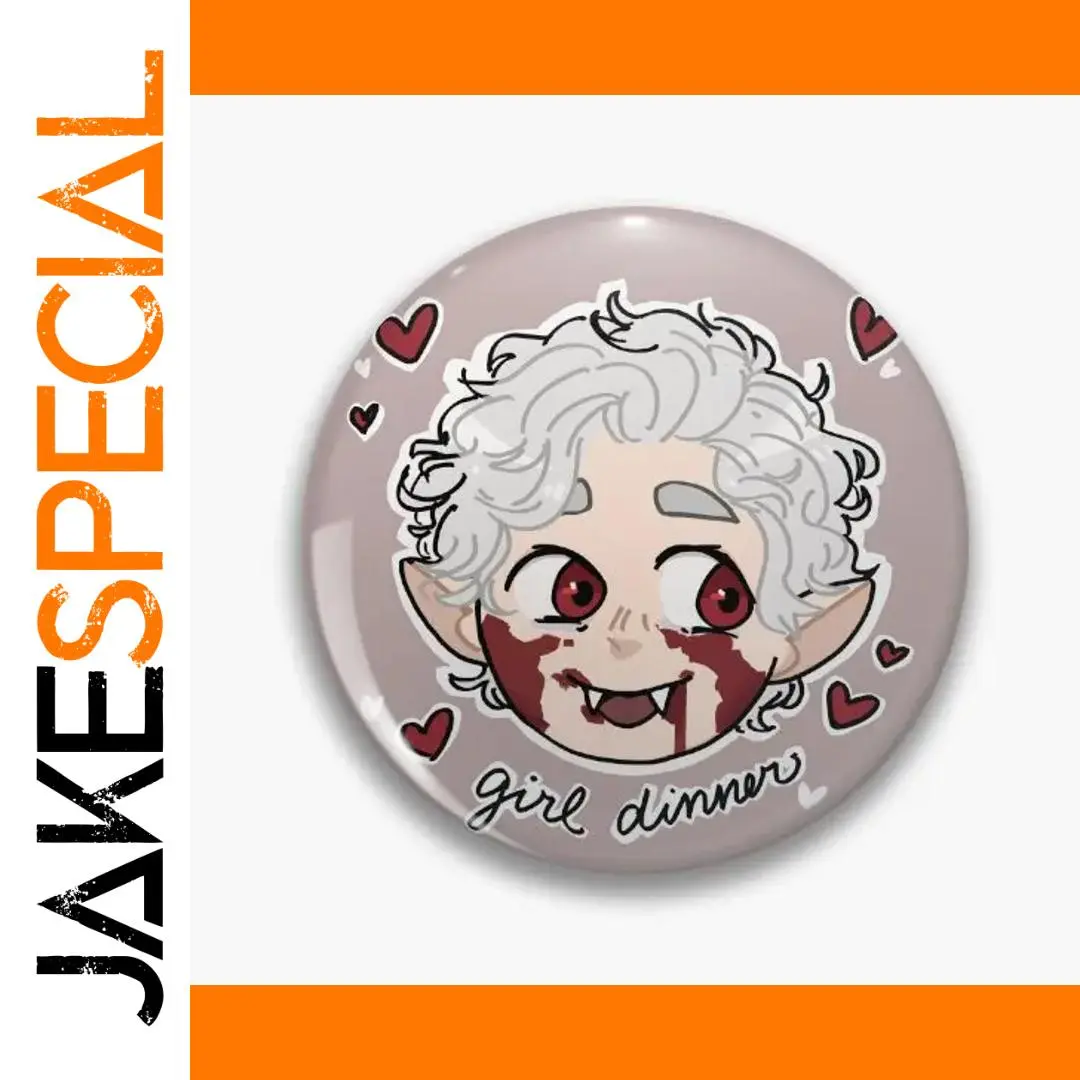 Discover this charming and whimsical lapel pin that adds a touch of personality to any outfit. Designed with a youthful, creative style, this pin features a cartoon-style vampire character with mischievous eyes, light gray curly hair, and elf-like ears. The vampire has a pale complexion, big expressive eyes with red irises, and a cheeky wink, complemented by tiny fangs and bloodstains on the cheeks for a spooky yet adorable edge. Surrounding the character are stylized hearts in red, black, and pale pink, enhancing its playful and affectionate vibe. The soft background provides a gentle contrast, making the vibrant illustration pop. Crafted from environmentally friendly alloy with a paper element, this pin combines durability and creativity. Perfect for expressing your fun personality and fashion flair.