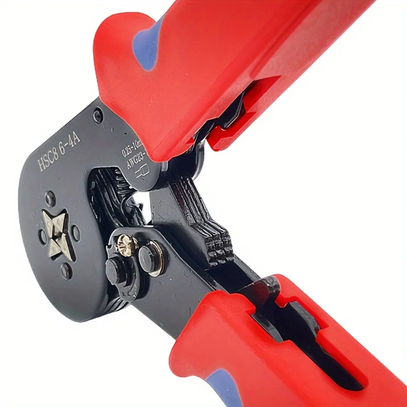 Step into a world of precision with this high-quality crimping pliers, crafted for professional and DIY electrical enthusiasts alike. Featuring sleek, vibrant red handles that are ergonomically shaped, these pliers offer comfort and excellent grip during extended use. The black, sturdy head showcases a high-precision fixture designed for accurate crimping of VE tubular terminals. The tool’s spring mechanism ensures smooth opening after each crimp, enhancing efficiency. Available in striking colors HSC86-4, HSC86-4 (1200 pcs), and HSC86-6, the tool combines durability with practical aesthetics. Whether you're working on small electronics or large wiring projects, these pliers make crimping effortless and reliable, turning complex tasks into simple, satisfying procedures.