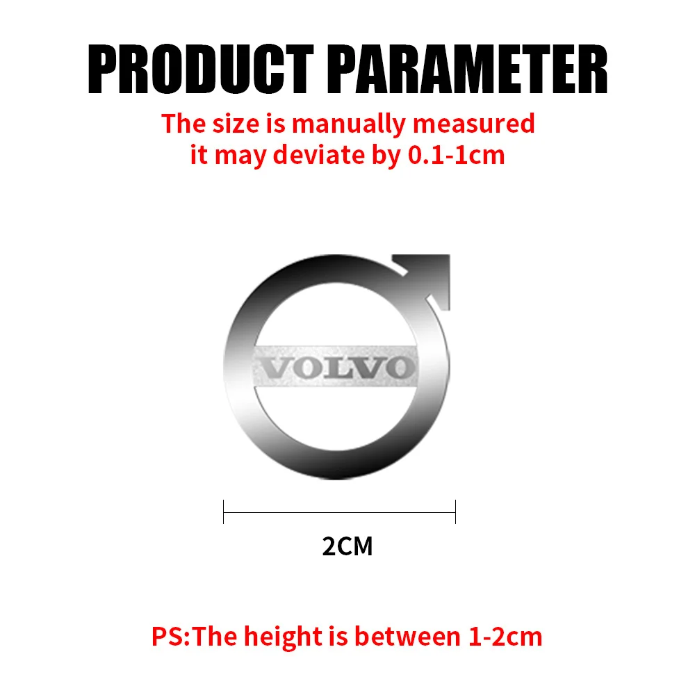 Enhance your vehicle’s style with this set of 10 or 20 high-quality nickel metal alloy badge stickers featuring a sleek, reflective silver finish and a modern circular logo intersected by a horizontal line. Designed for flat surfaces on various models including R Design T6 AWD, C30, C40, C50, C70, S40, S60, S70, S80, S90, V40, V50, V60, V70, V90, XC30, XC40, XC60, XC70, and XC90, these waterproof, oil-proof, and washable badges offer easy peel-and-stick installation for long-lasting, sophisticated vehicle customization.
