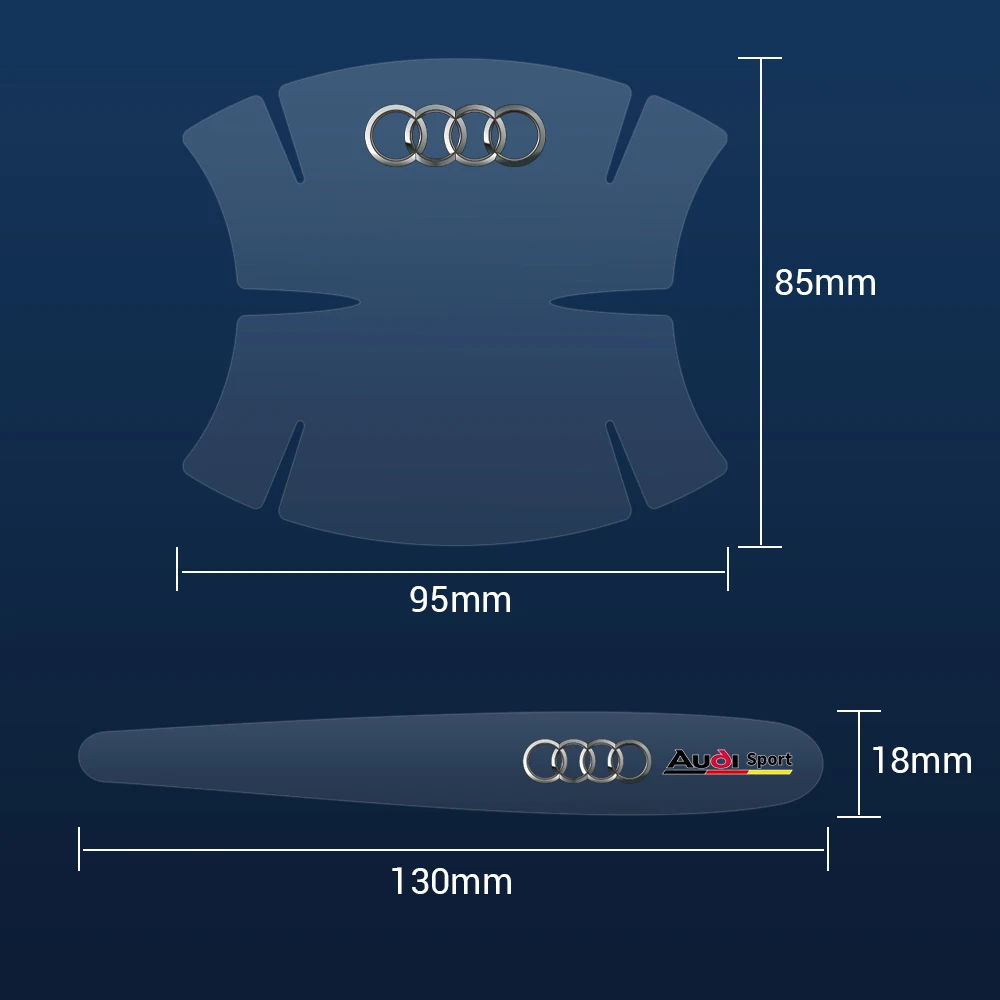 Protect your vehicle’s sleek and sporty handles with this nearly invisible transparent protective sticker, compatible with models including Sline, RS, TTS, TTRS, SQ3, Q3, Q5, Q7, A4, A3, A6, A5, A1, A7, and A8, as well as B, C, 8P, 8V, 8L, and 4F series vehicles. Crafted from flexible, scratch-resistant material, it provides an almost undetectable shield against scratches, chips, and minor impacts, preserving your car’s pristine appearance. The easy, tool-free installation involves simply spraying water on the handle, allowing for quick repositioning, while removability ensures no damage or residue. Durable and weather-resistant, this sticker offers a long-lasting solution to maintain your vehicle’s elegance.