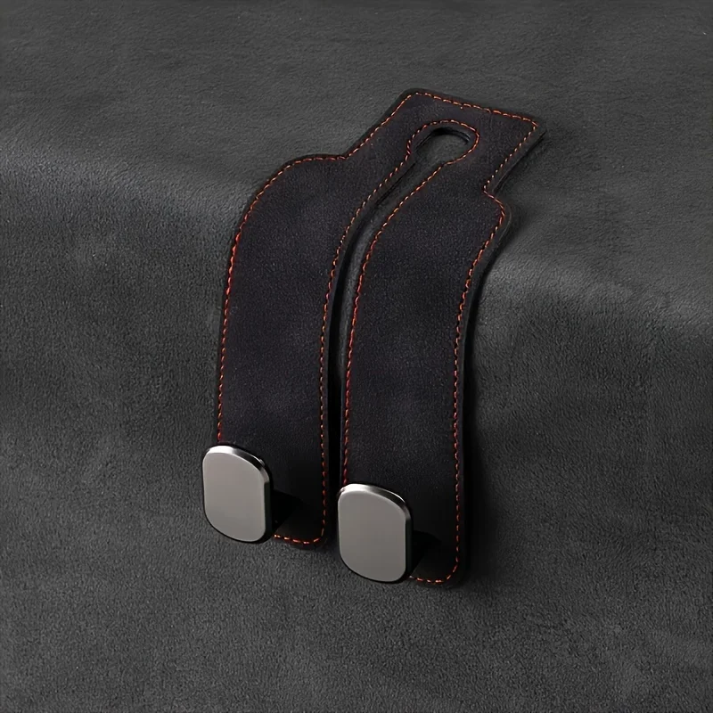 Imagine effortlessly keeping your vehicle tidy with this stylish car headrest hook. Crafted from scratch-resistant synthetic leather and durable ABS, it blends practicality with elegance. Available in neutral tones—gray, black, and brown—it seamlessly integrates into your vehicle interior with a minimalist, modern design. Its textured grip surfaces and reinforced clasps ensure a secure fit on standard headrest posts, preventing slipping during sudden stops or bumpy rides. The curved bottom design comfortably holds purses, shopping bags, umbrellas, or water bottles, while sitting discreetly flush against the seat when not in use, maintaining a clean look. An excellent upgrade for SUVs and compact cars seeking function and style in one simple accessory.