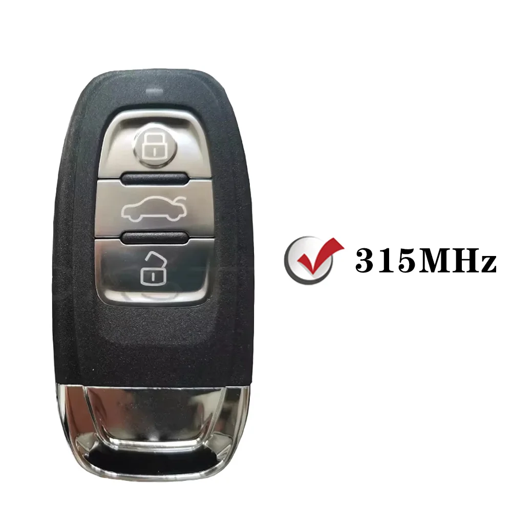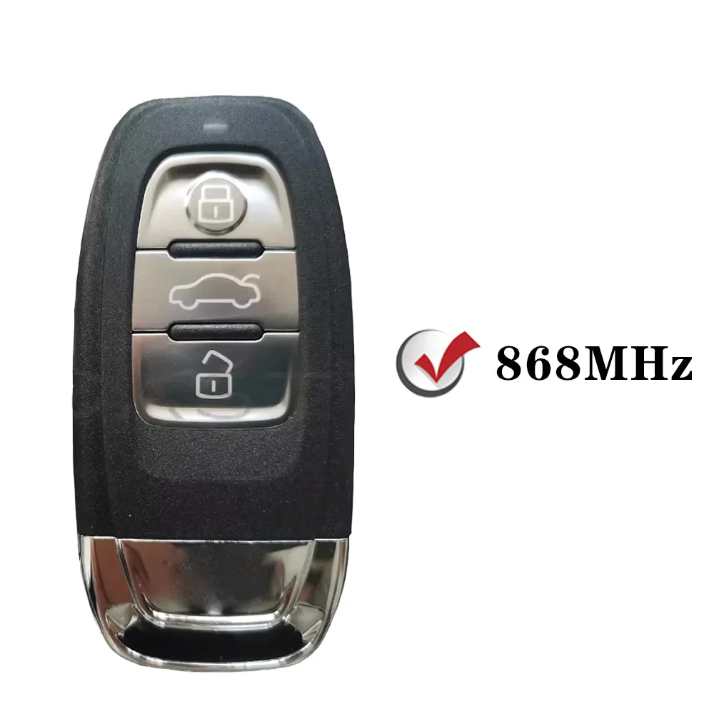 Experience enhanced convenience and sophistication with this this remote control key designed for vehicles from 2008 to 2014, including A4, A4L, A5, and Q5 models. Combining sleek aesthetics with functional excellence, its elongated rectangular shape features a textured black rubberized grip on the top, providing a comfortable, non-slip feel. The middle section boasts a polished silver metallic finish, adding a modern and elegant touch. The front displays three distinct icons—lock, unlock, and trunk release—vertically aligned against a matte metallic background, offering quick and intuitive access. Crafted to match your vehicle’s style, this key ensures durability, reliability, and a seamless user experience, elevating your daily interactions with your car.